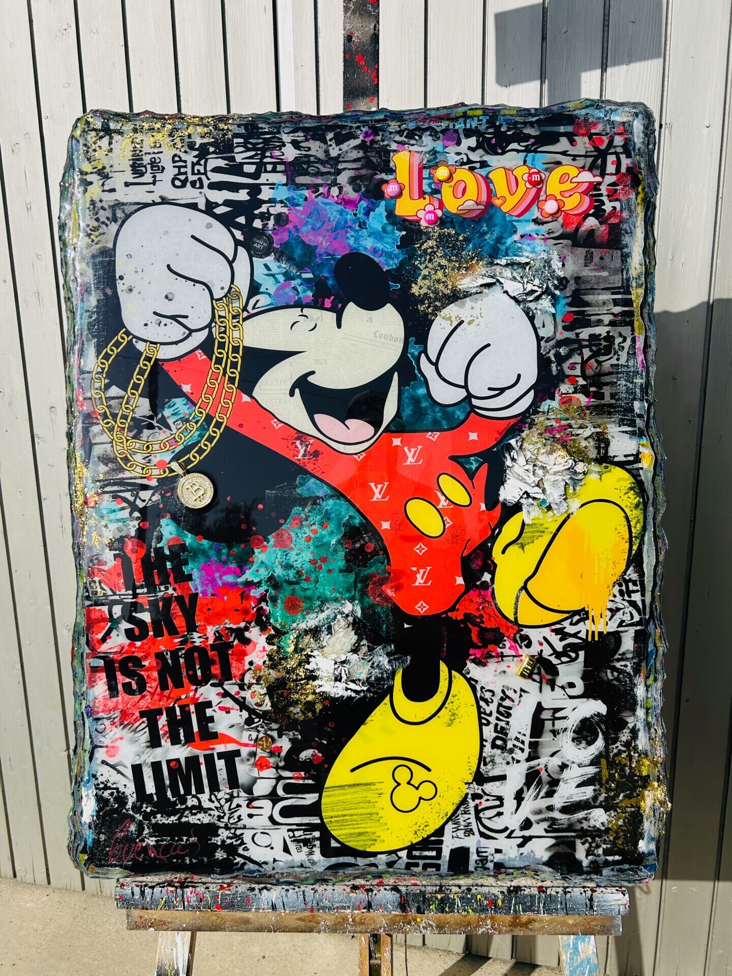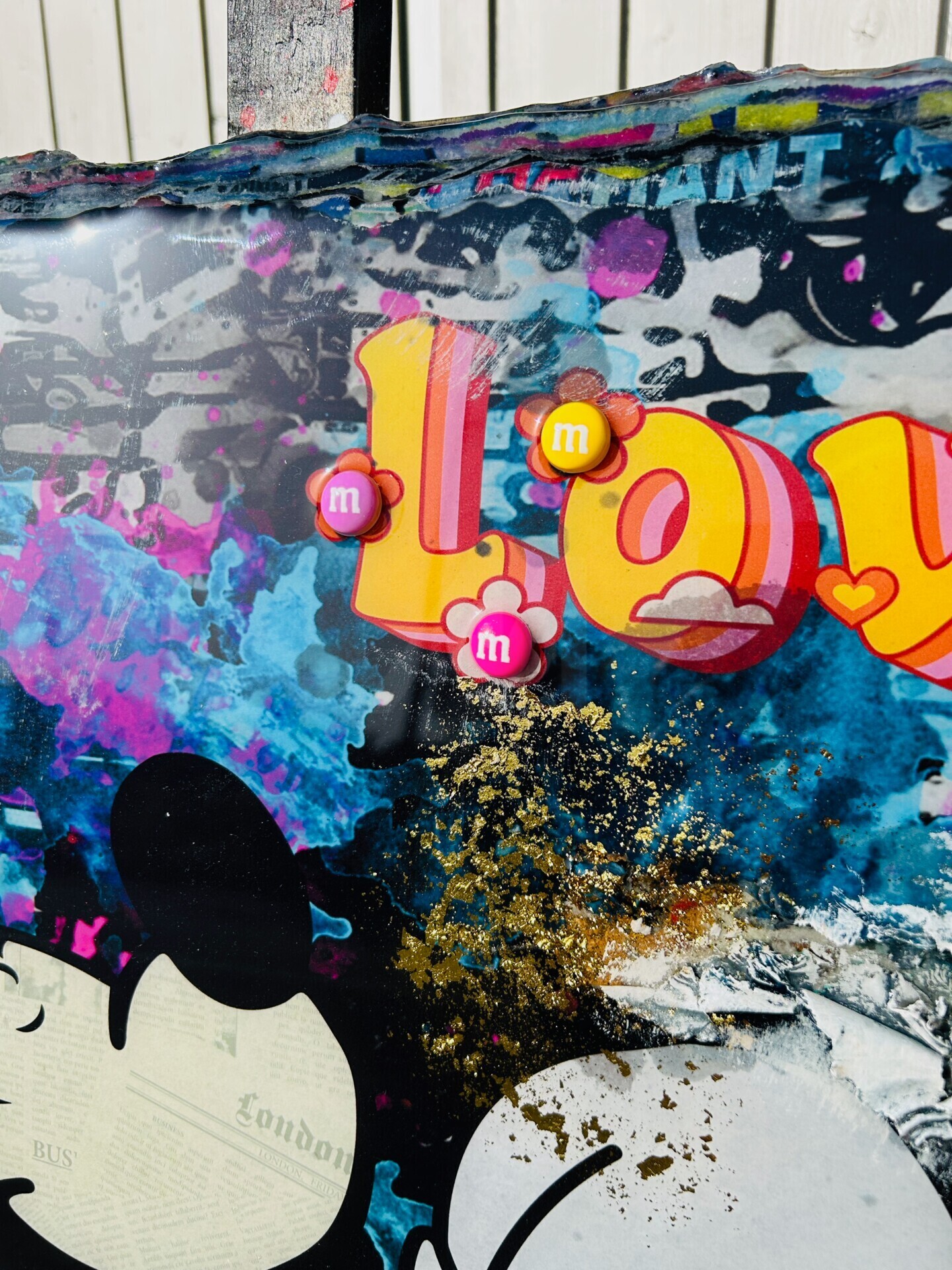 Von Hand veredelt mit Glitzer, Acryl, Spray und und anderen Materialien. Unikat. Vorne und hinten signiert, datiert und mit Echtheitszertifikat. Seine Oberfläche ist mit 2 Schichten Epoxydharz versiegelt, welche dem Bild einen wunderschönen „Hochglanz-Effekt“ verleiht. Die aussergewöhnliche Gestaltung sorgt für lebenslange Freude. Dieses Kunstwerk...