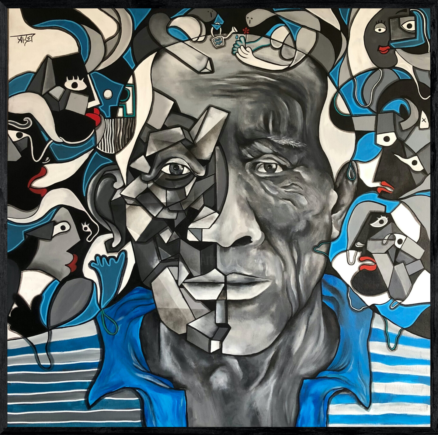 Banque d'images artistiquesAket, artiste peintre autodidacte depuis son plus jeune âge, a été influencé par la bande dessinée et le graffiti. Aujourd'hui, sa principale source d'inspiration vient du cubisme, bien qu'il apprécie également le travail de Combas et de Basquiat.
