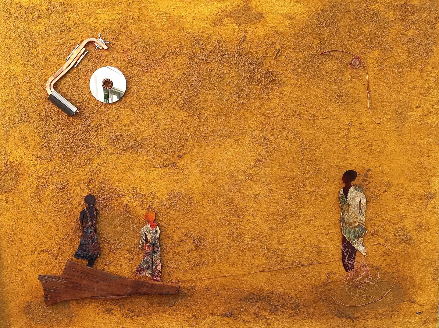 Art image bankAlain Noble develops a body of work centered on matter and memory. Sand, copper, wood, paper, computer fragments, and plants become the elements of a unique visual language, somewhere between abstraction and symbolism. His canvases, sometimes close to sculpture in their relief, evoke walls, silhouettes, and imprints: all traces that question time, the fragility of humanity, and the confrontation between nature and artifice.