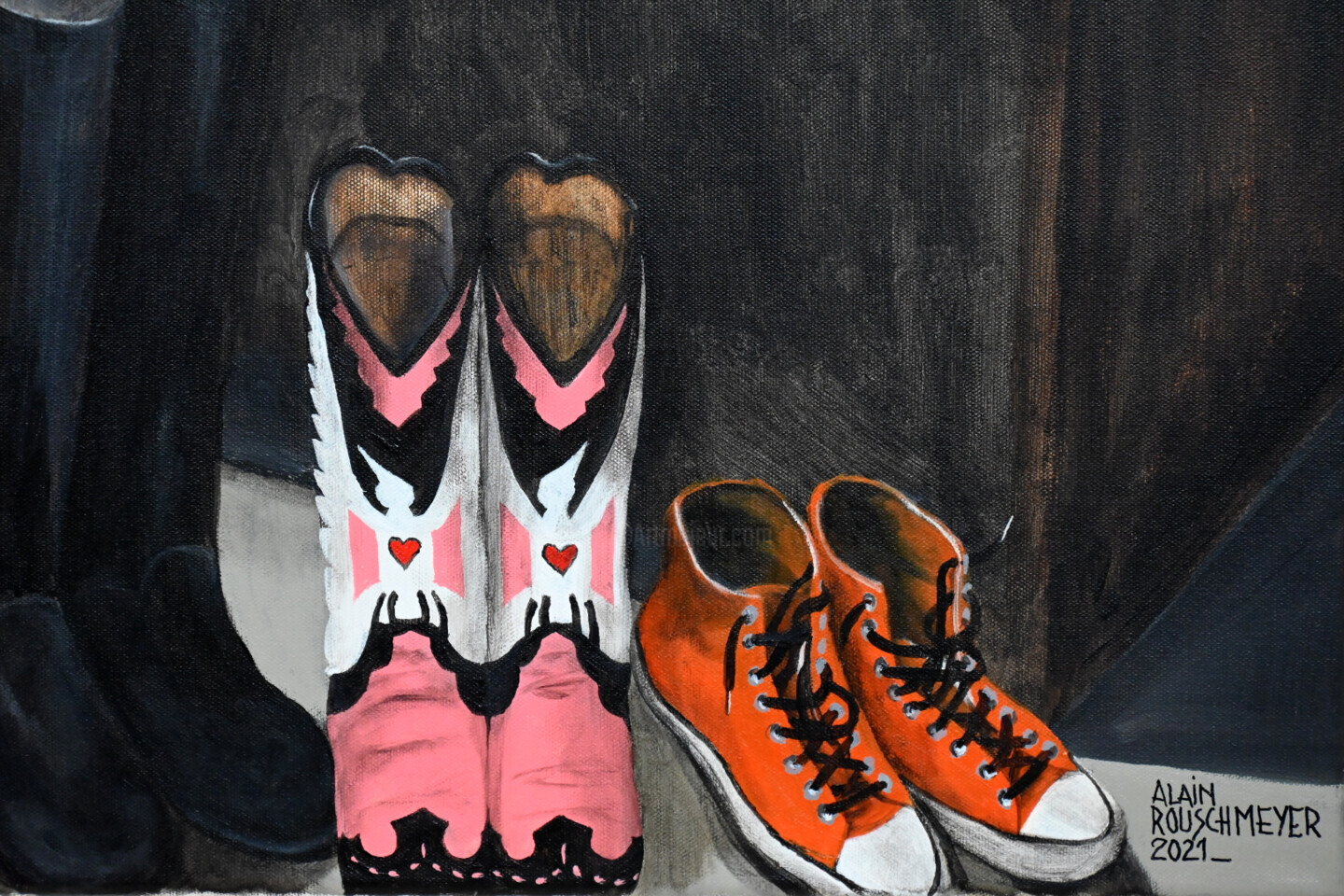 Rouschmeyer's artistic expression delves into the concealed dimensions of daily existence, akin to the perpetual challenge presented by jazz music or the warmth of blues. The romanticism embedded in his work is a contemporary and timeless translation, occupying the canvas as an engaged space where his artistic vision comes to life.
