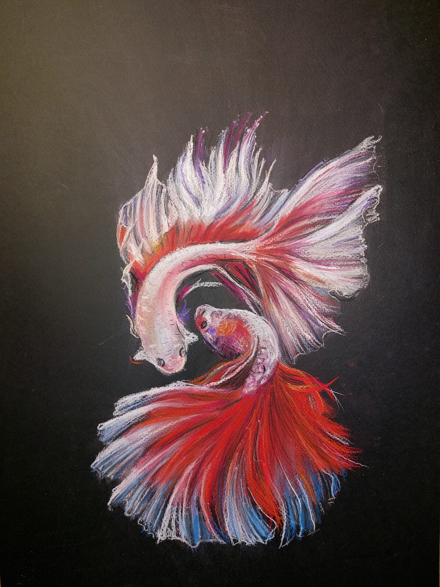 I work in watercolor, pastel and oil painting techniques, and also paint clothes.