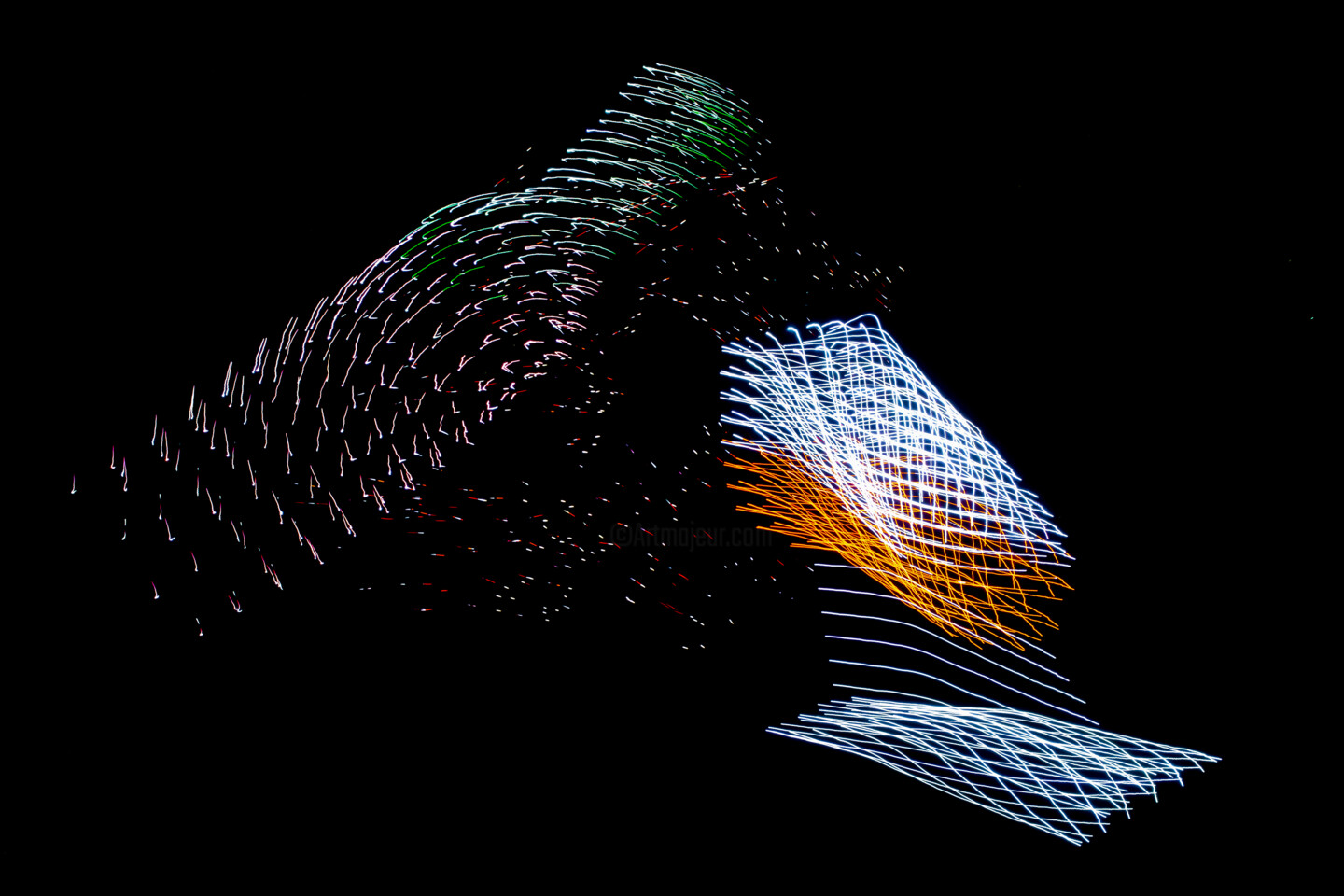 Ces photographies sont créées avec un Leica M à partir des mouvements de centaines de drones (Dronisos) capturés en pose longue. Notre rétine perçoit alors une autre réalité issue du mouvement de l'essaim, parfois menaçante ou poétique, toujours picturale. Support aluminium, édition signée / numérotée 2/30. About this artwork: Classification, Techniques...