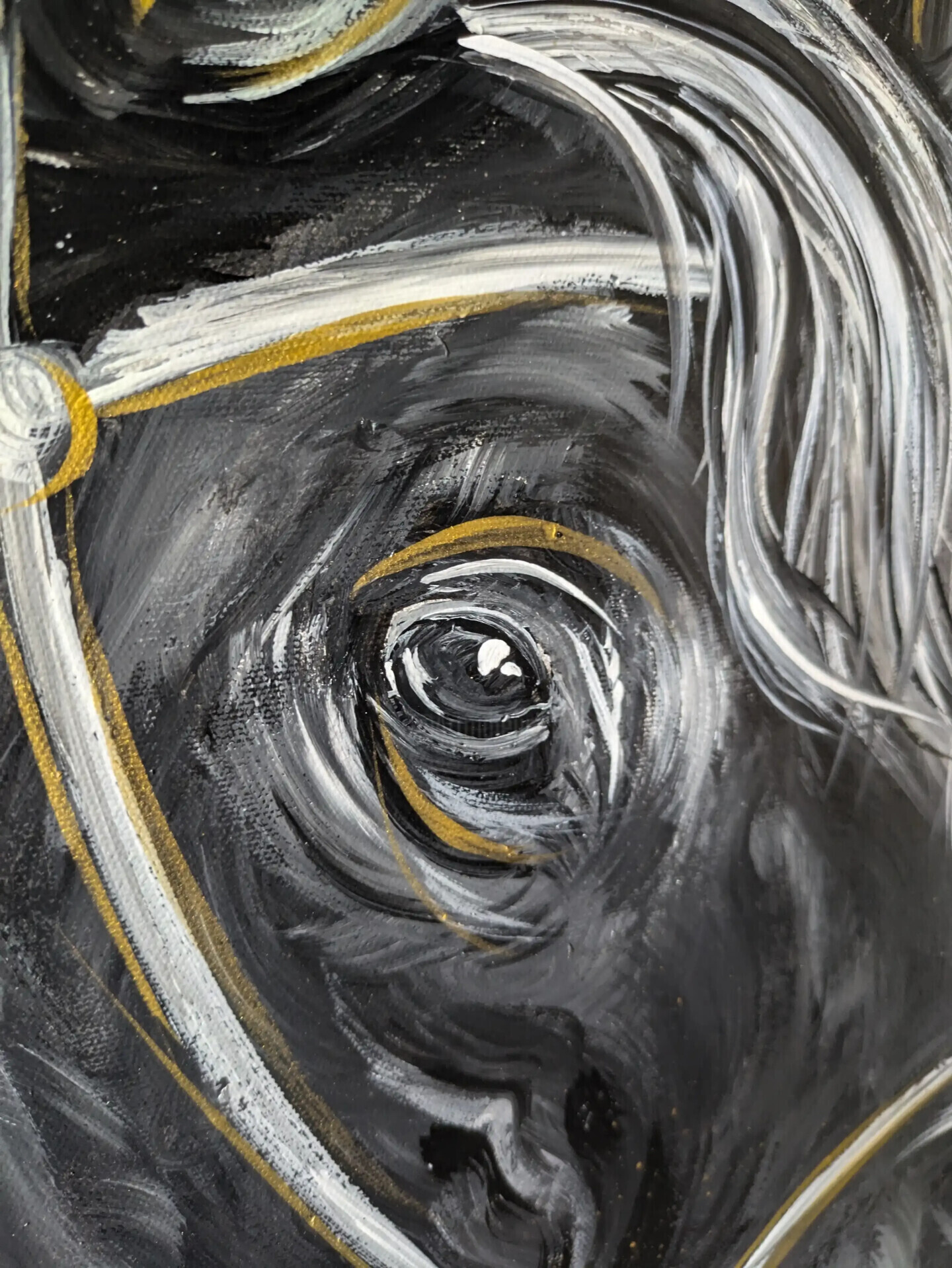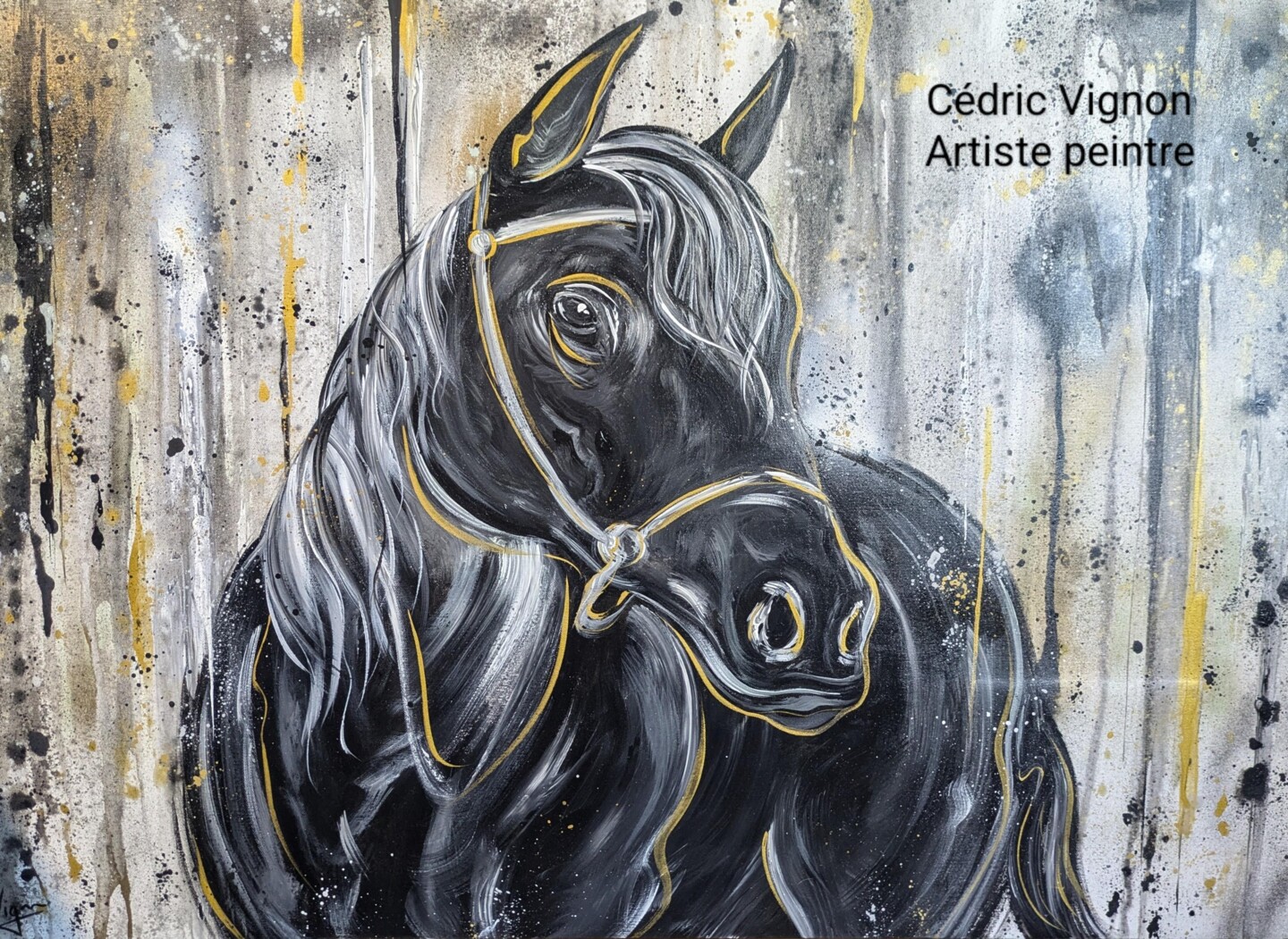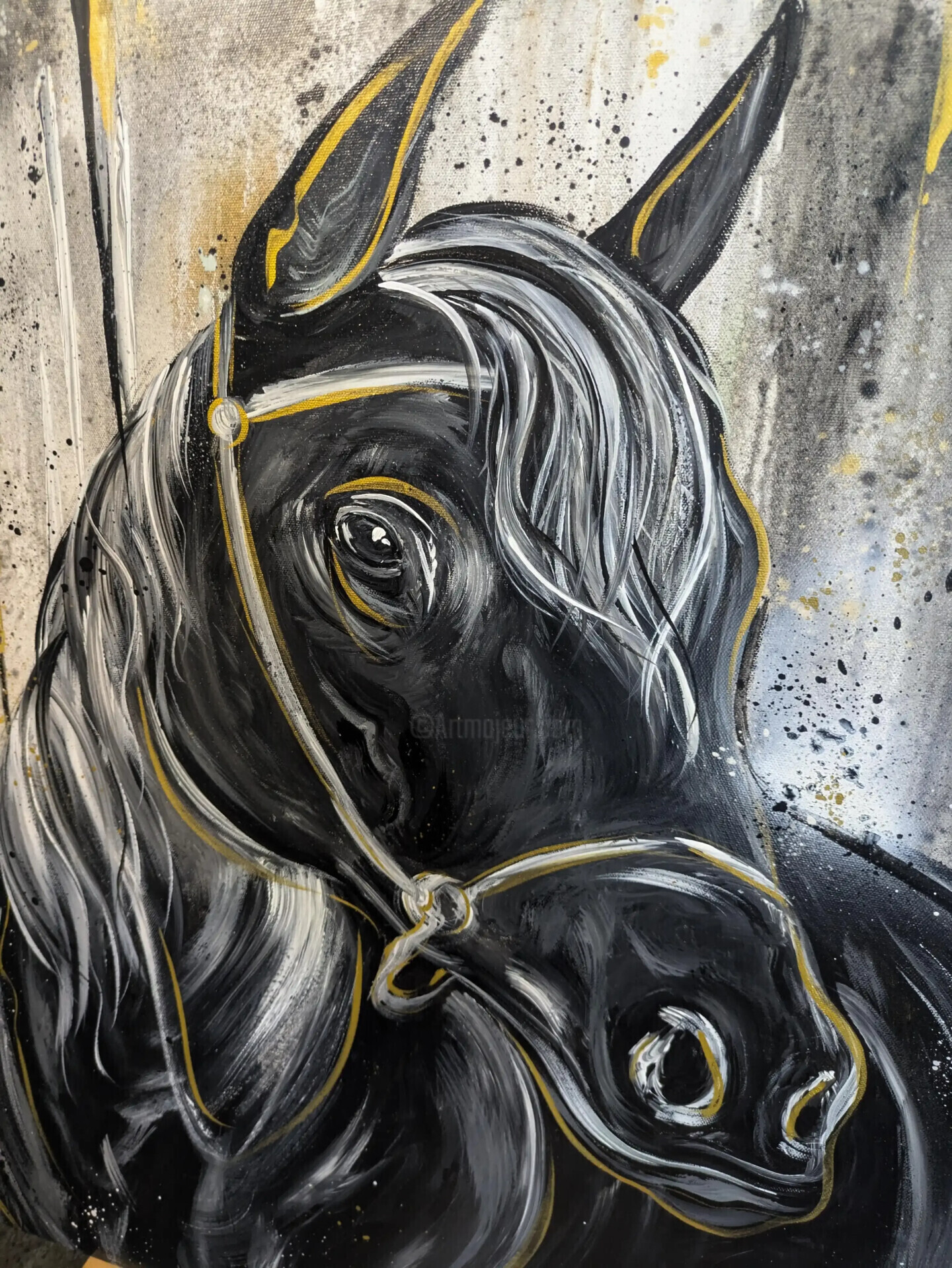 Peinture cheval noir blanc or horse Black animal street art (2024) Tablo Cédric Vignon tarafından