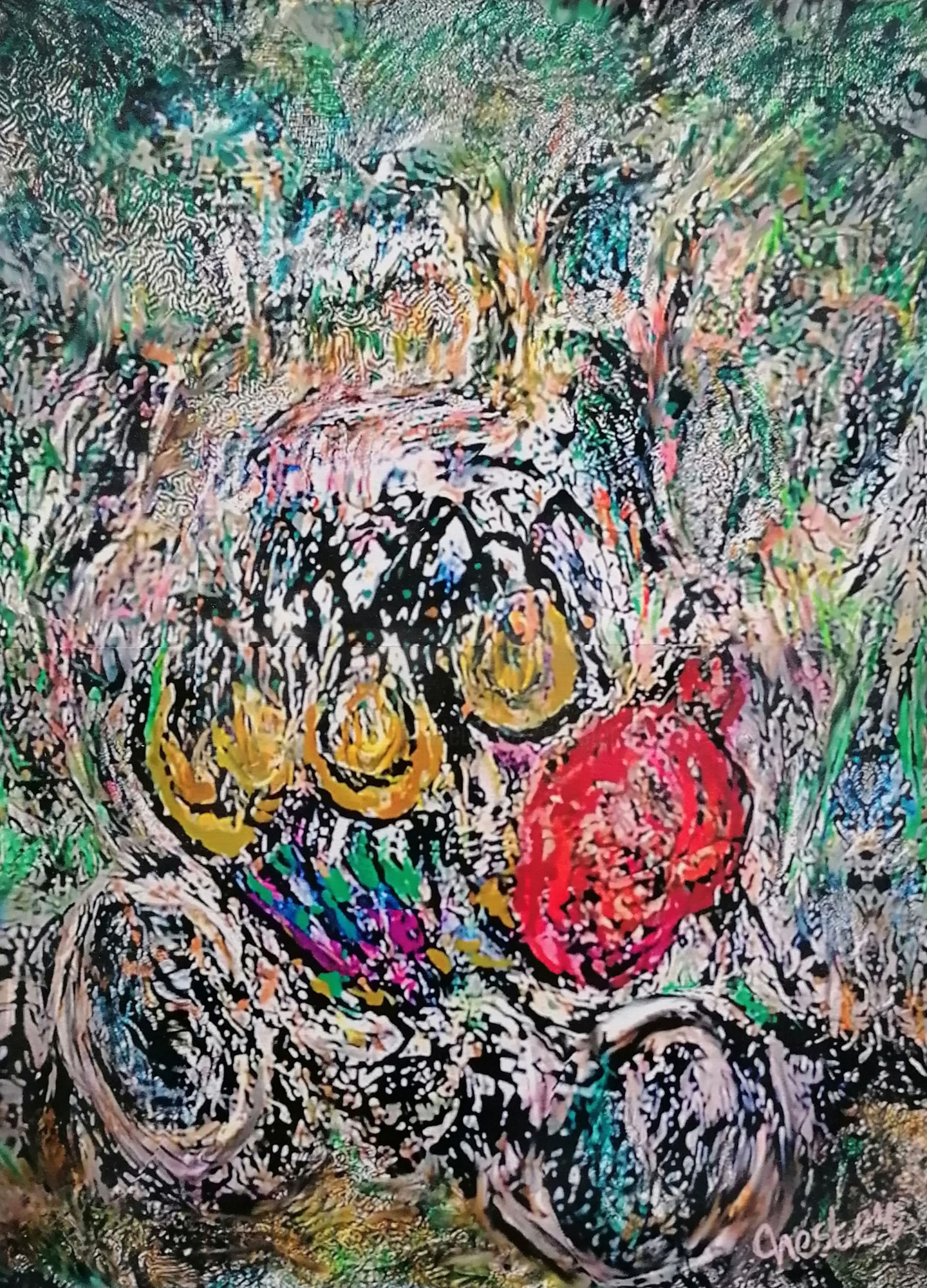 Art image bankRichard Raveen Chester is a multifaceted artist. He developed a new form of printing using a digital technique and superimposing layers on heavy art paper. He specializes in contemporary simultaneous and continuous color printing. The artist reworks the print after the marouflage transfer onto heavy art paper to achieve the artistic effect.