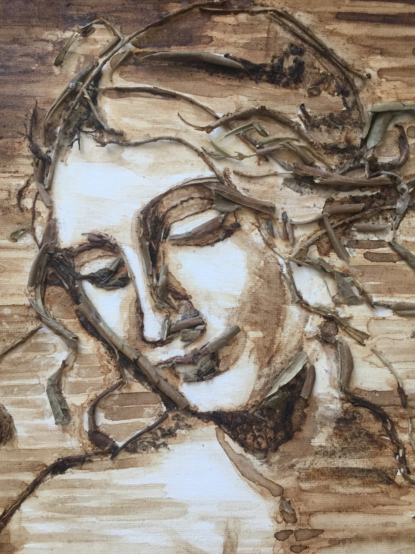C'est cette conscience du sacré, qu’elle tente de transcrire au moyen d'huiles sur toile et parfois au fusain.