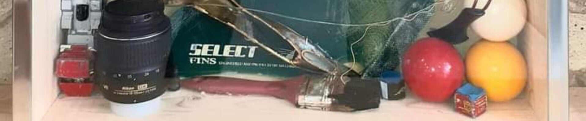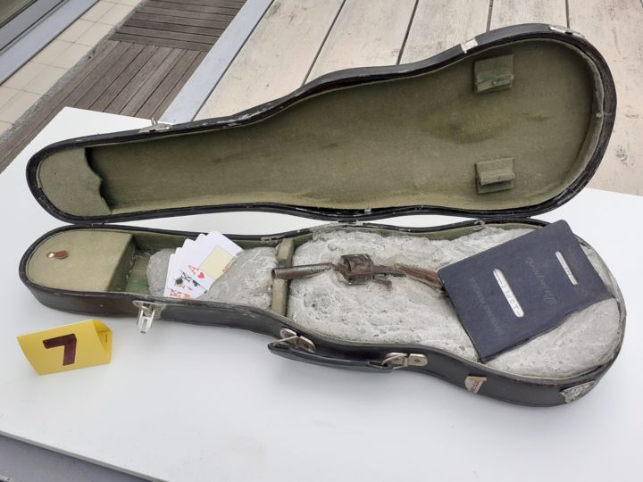 dans le béton : instruments de musique, autos miniatures , modules informatiques.