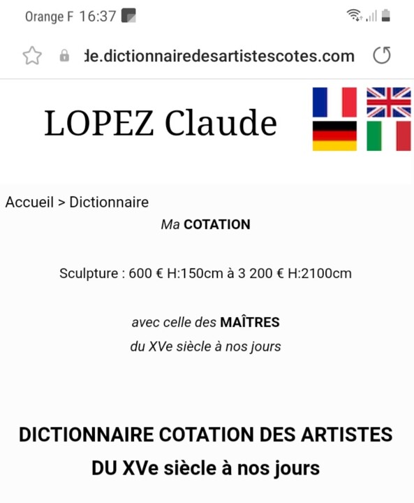 Cote artiste Sculpture 2024 | 4 200,00 € (4 869,06 $US)