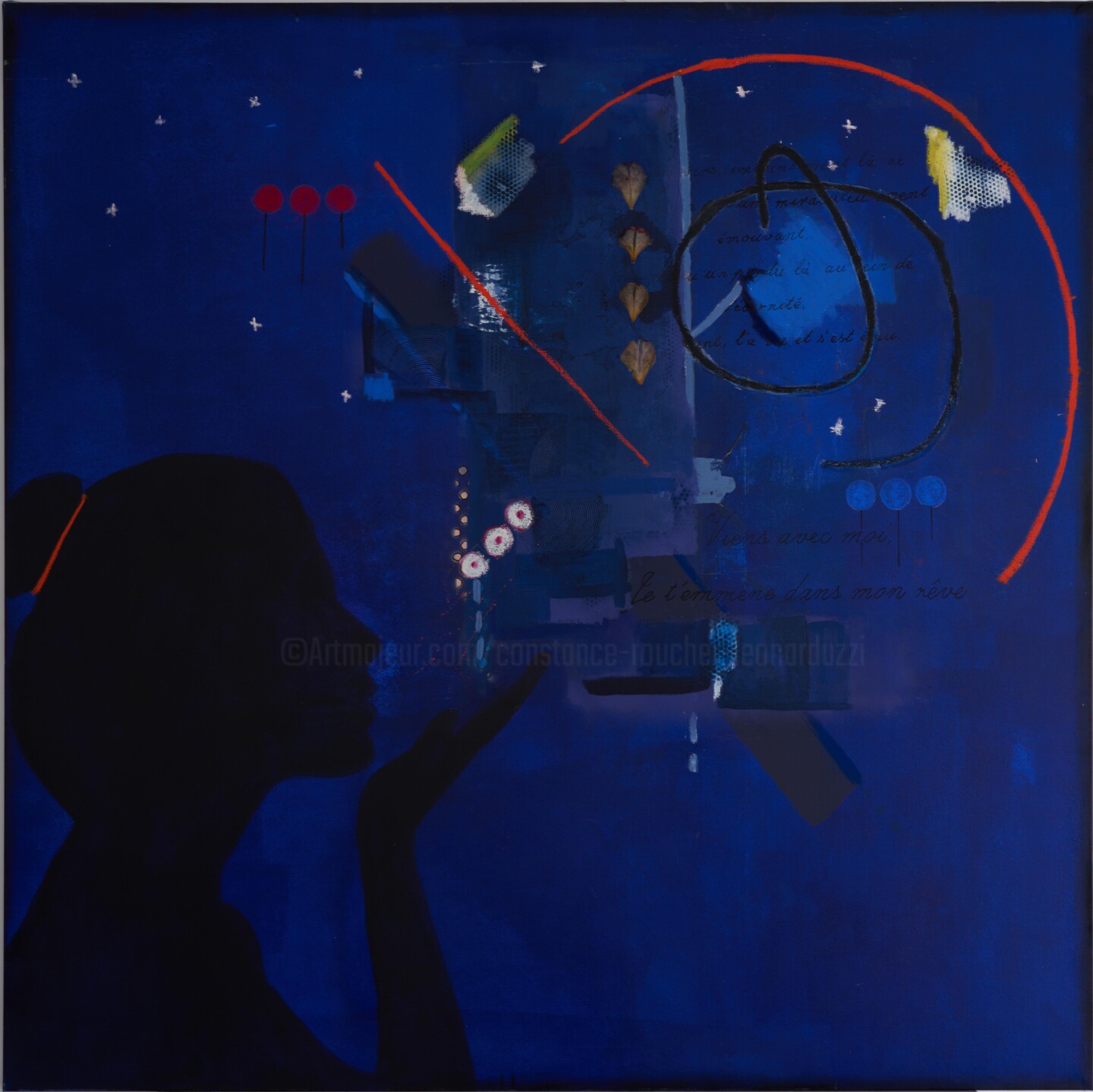 Art image bankLes oeuvres de Constance ne se contentent pas d’être regardées: elles se vivent. Chaque tableau s’apparente à un manifeste visuel qui interpelle et captive, où dimension émotionnelle et profondeur esthétique fusionnent en une pièce d’art unique et vibrante. Teintées d’un esprit rebelle et libre, ses oeuvres flirtent entre expressionnisme et art brut, impactées par le graphisme du pop art et la spontanéité des mouvements underground. Ses toiles sont comme des palimpsestes d’émotions, où le silence et la révolte cohabitent. Et c’est justement cette dualité entre fragilité et force, entre blessures et résilience qui donne tant de vie et d’émotion à son travail. Ce n’est pas un art figé, c’est un art en mouvement, un art qui évolue avec elle, qui porte les traces de son cheminement intérieur.