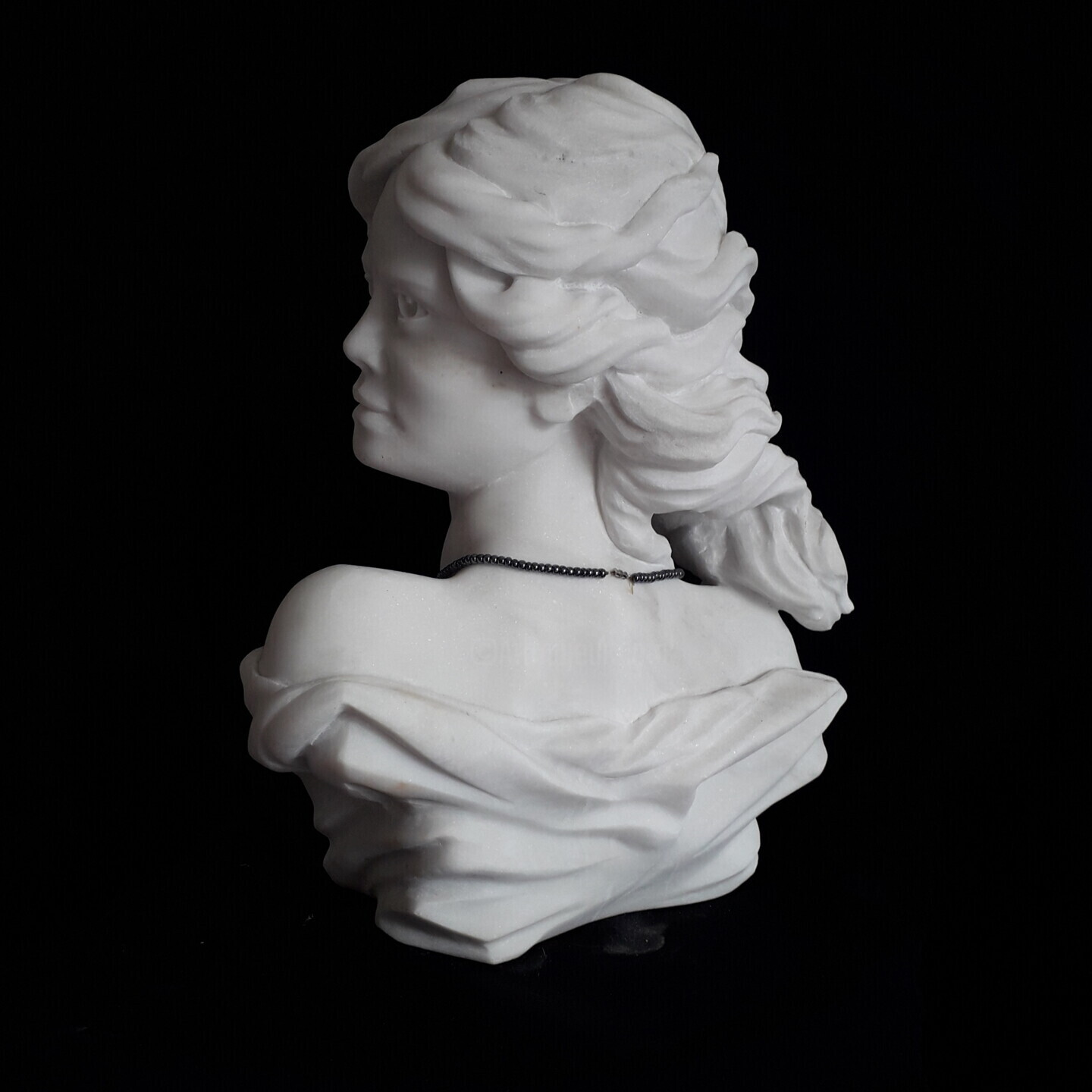 Sculpture en Marbre. Buste de Jeune Femme intitulé "le vent". hauteur 30 cm environ. À propos de cette œuvre: Classification, Techniques & Styles. Pierre. Technique de sculpture utilisant une substance minérale solide. Figuratif. Peinture figurative et colorée ayant pris la liberté de faire figurer toutes formes d’art sans frontière de genre culturel...