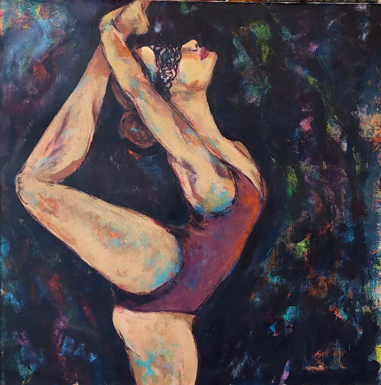 Dancing and painting for Mina are very deeply connected and in balance with each other. Whenever her expression on canvas become blurred she finds balance again in dancing to relieve her darkest emotions and restore peace