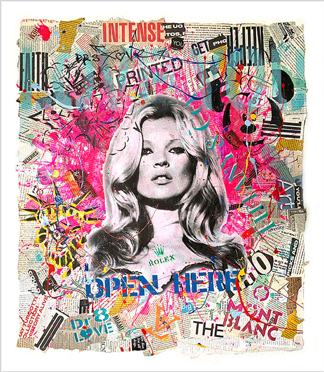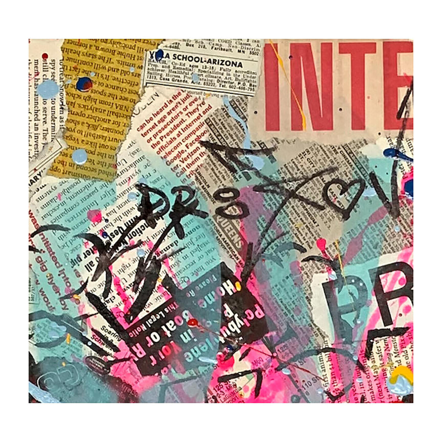 In creating this piece, I indulged in the vibrancy and energy of pop art, using oil and collage to juxtapose iconic imagery and text. It reflects an electric chaos, balancing the familiar with unexpected bursts of color and pattern, inviting viewers into an exhilarating narrative of culture and expression. This work will infuse any space with the dynamic essence of modern life and spirited conversation.