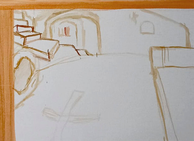 SOULS / EPISODE 12/13. "I BELIEVE" - Картина, 7,9x7,9 in ©2023 - Екатерина Захарова - Surrealism, surrealism-627, Обнаженная натура, souls, god, devil, expressionism, sienna, blue, unique, people, unusual, emotions, ekaterinazaharovaart, horrorart, darkart, figurativeart, contemporaryart, darksurrealism, metalart