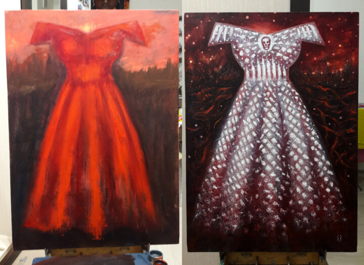 Картина под названием "REQUIEM FOR A DREAM" - Екатерина Захарова, Подлинное произведение искусства, Масло Установлен на Дере…