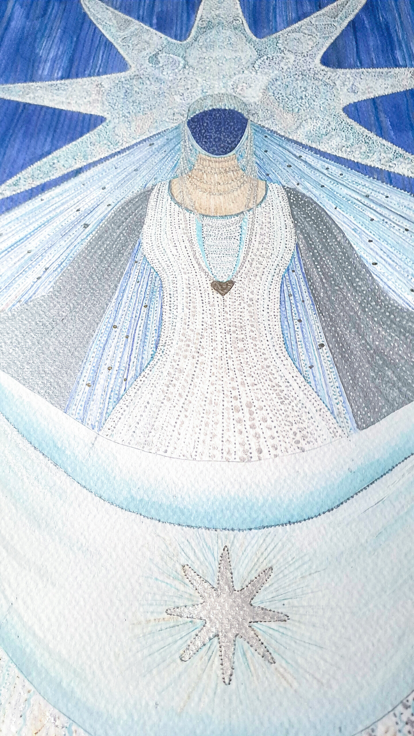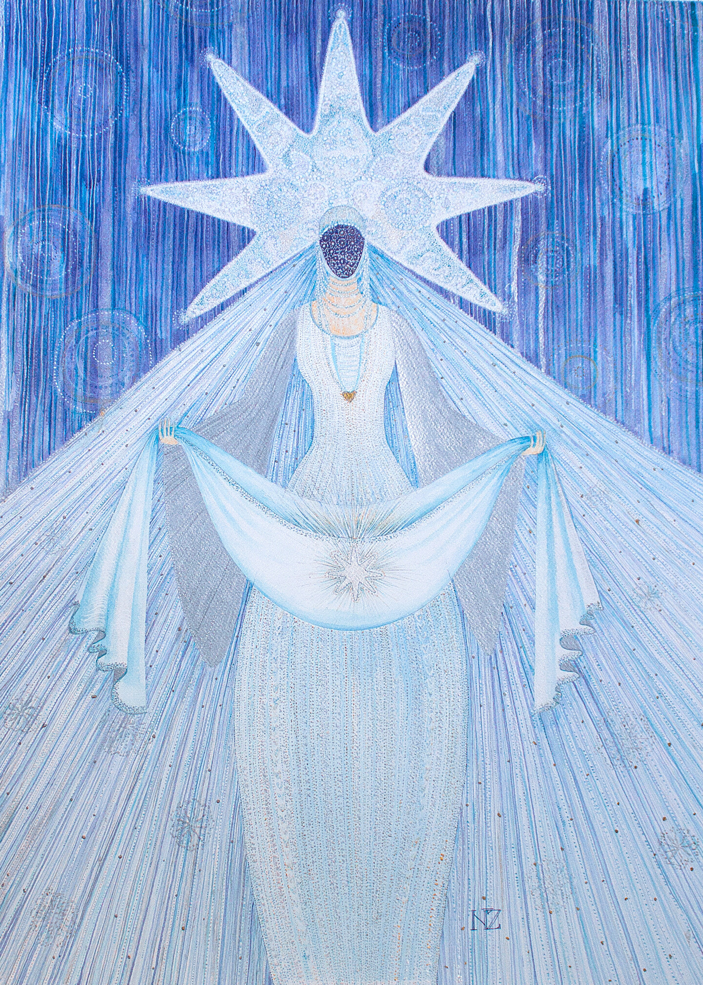 Elaria paints presence. Each work is a trace of something unspoken: a memory, a wound, a silent knowledge. Her art emerges from the depth of inner experience, shaped by myth, intuition, and the sacred feminine. These drawings are not designed — they are revealed.