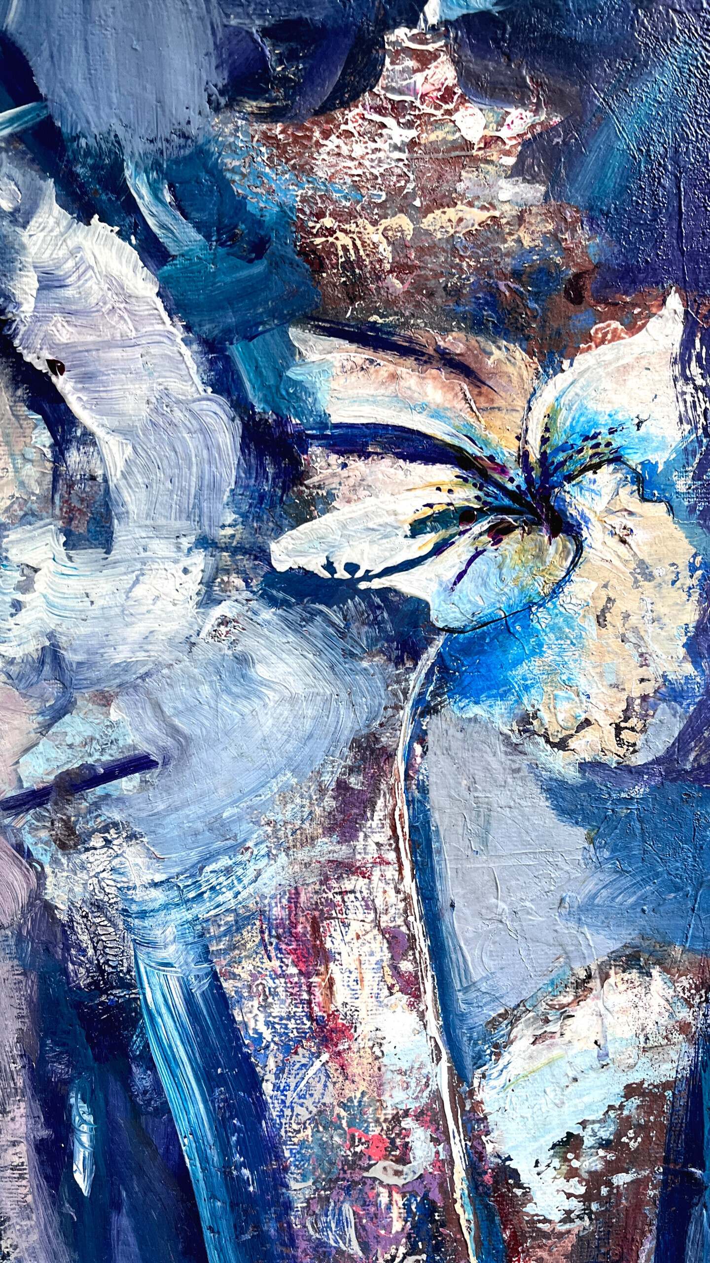 Elen Iv draws inspiration from the vibrant, ever-changing moments of everyday life, contrasted with the pure beauty of nature. Each painting begins with a single emotion, allowing organic forms to emerge naturally onto the canvas through underpainting. Her process involves layering and shaping these forms until the finished piece takes shape, reflecting the cycles, emotions, and balance of our dynamic world. Her technique captures the evolving nature of observation and decision, blending chance with intent, resulting in layered compositions that balance the random with the controlled.