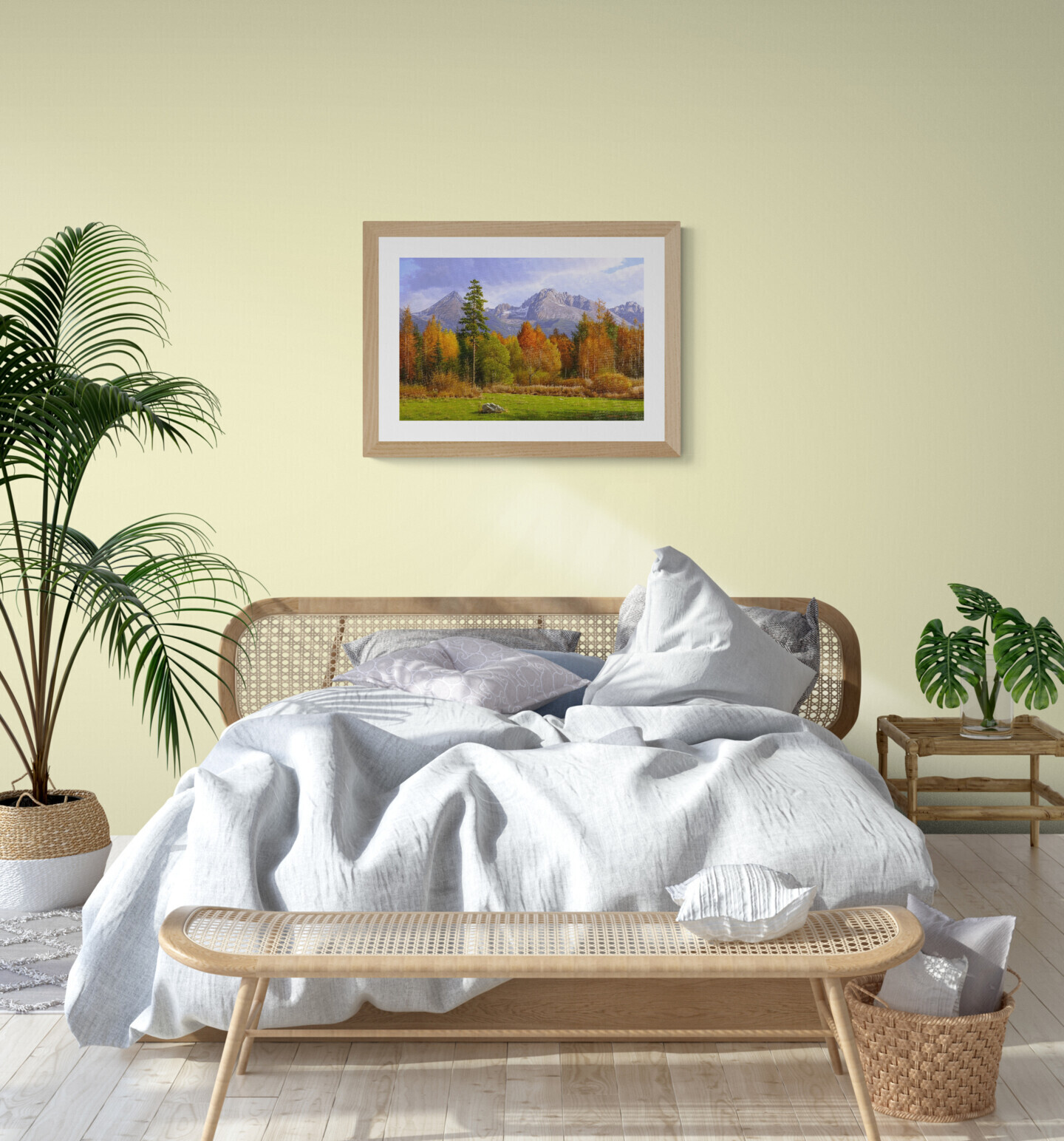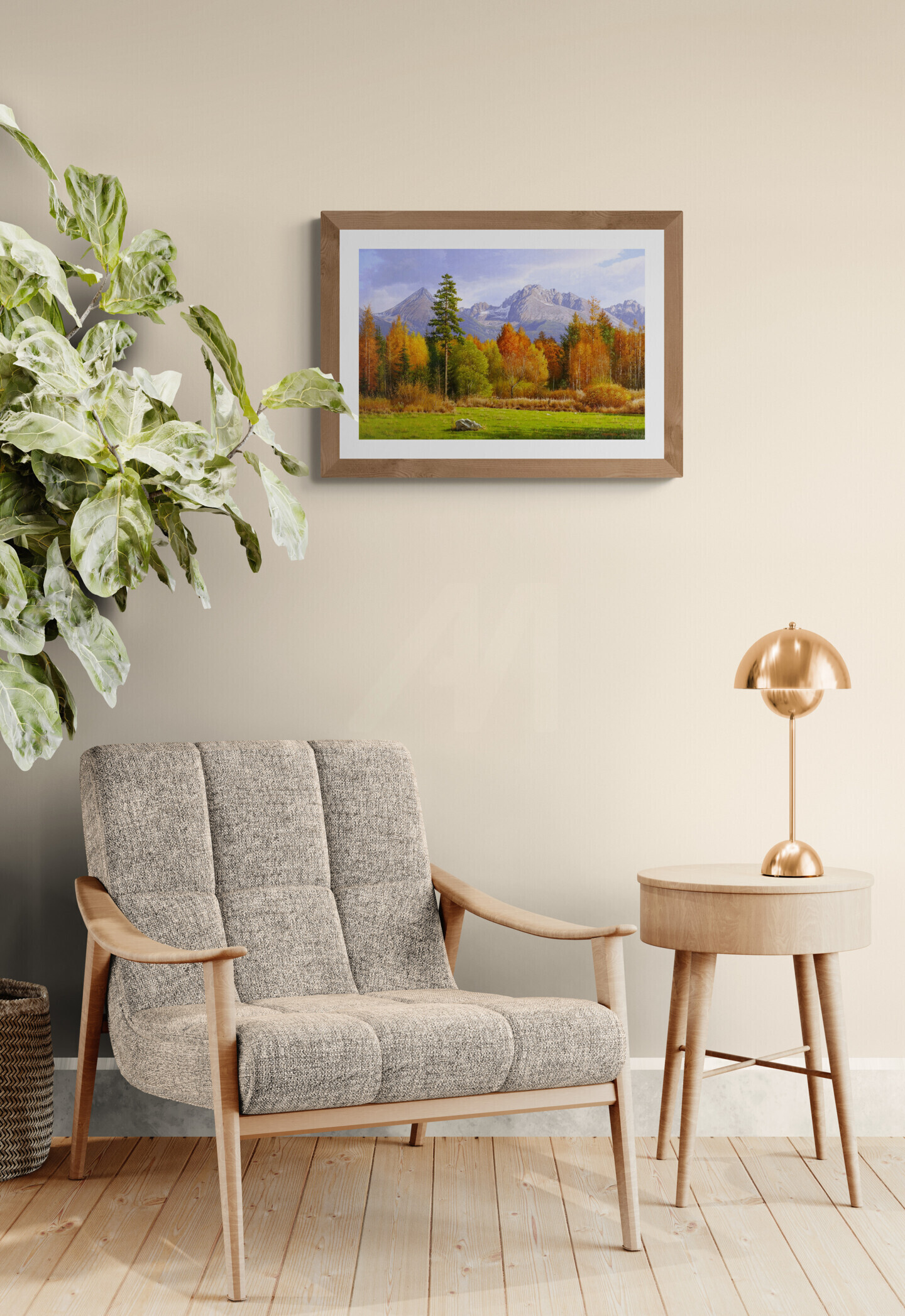 In this piece, I poured my passion into blending impressionism’s vibrant brushstrokes with the sharp details of realism. Inspired by autumn’s vivid contrasts, I wanted to capture the serene power of nature’s changing season. This painting breathes warmth and calm, bringing the crisp mountain air and golden woods right into your space, inviting peace and reflection.
