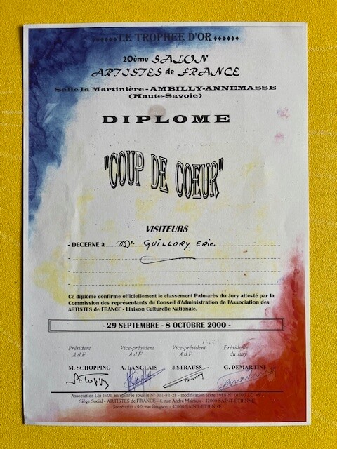 Eric Guillory est un membre de ArtMajeur: Compte PLATINUM. Les membres Platinum disposent du plus haut niveau d’engagement sur la plateforme. A ce titre, ils bénéficient de services additionnels pour promouvoir, protéger et vendre leur travail. C’est le signe que ces artistes sont réellement motivés et investis dans une démarche proactive pour faire connaître leur art, et augmenter la valeur de leur travail.