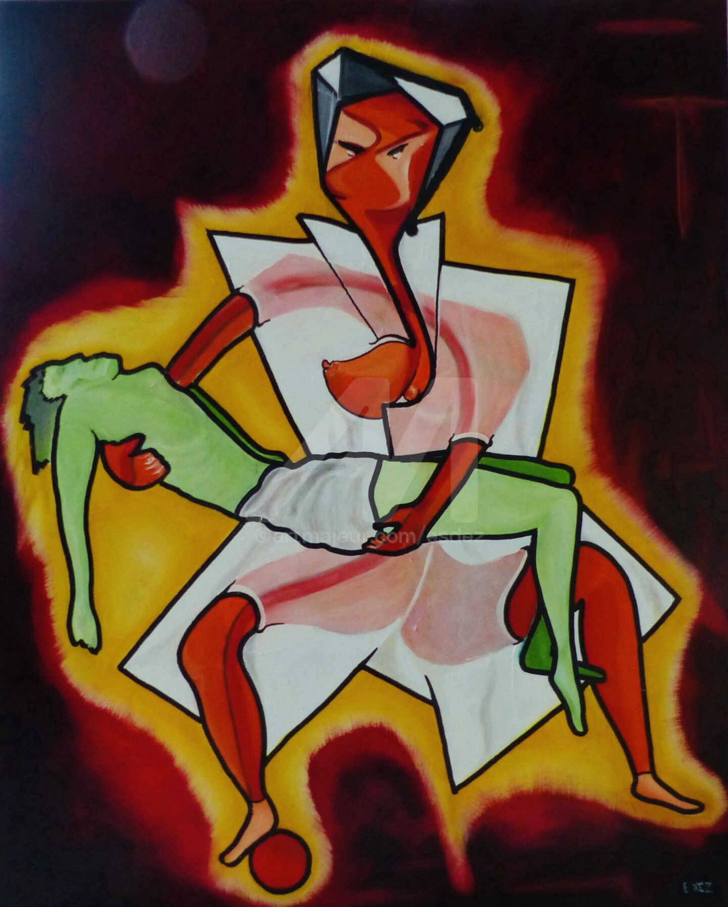 Art image bankPermanent artist of the Art Fresco Povera Gallery in Sommières (30). Eclectic production in permanent evolution revealing a faceted personality for this painter. His latest works tend towards cubism which will come to him naturally. One day, he observes a photo where we see the famous sculptor Alberto Giacometti looking tiny next to his huge statues. Fascinated by the contrast of proportions, Esdez was inspired by it and, without even intending to, cast his first cubist work on the canvas, which he would name Giacometti and his creatures. He decides to continue in this artistic movement which allows him to get as close as possible to what he wishes to express through his works. In this way, he can deconstruct the environment, explode the subject, reveal the various facets of a character, show it in all its forms. After having made numerous collections of very personal works, Esdez decided to work on works by great masters by interpreting them in his own way. Always through the cubist process, he thus achieves a more current cutting of the great classics, in particular biblical scenes, to give them a dash of modernity. A way for him to pay tribute to those he has always admired. His cubist paintings are very quickly noticed by specialists in the Art market and the painter then obtains a certificate of listing by an expert approved by the courts. This passionate painter devotes every day to bringing new works to life in his studio. When asked, Esdez does not really know when his passion for drawing dates back, but he is sure of one thing, he will be behind the brushes until the end...