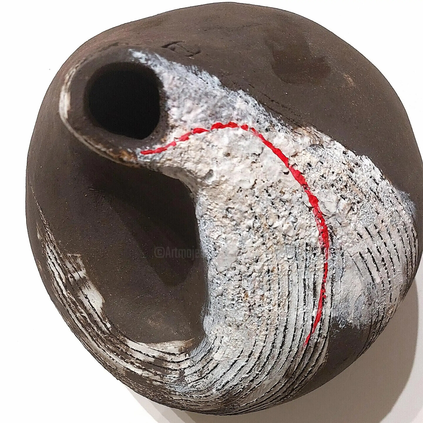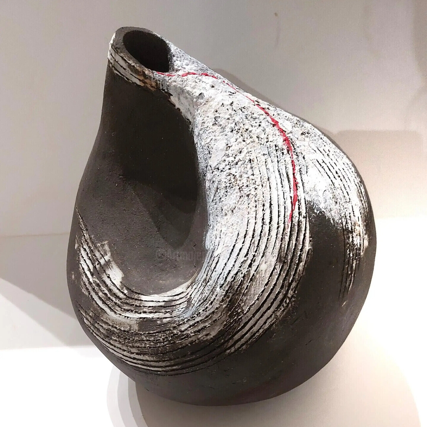 Art image bankJ’ai découvert la céramique très jeune. Et pendant longtemps, elle a été mon support d’expression artistique que je ne pouvais déployer dans mon milieu professionnel. Mon expérience durant 20 ans dans le secteur du handicap et du grand âge, m’a fait comprendre la nécessité de nous adapter aux contraintes imposées par la différence, différence toujours liée à des parcours de vie bousculés, imprévus et incertains. En juin 2021, j’ai obtenu un CAP de tournage en céramique et ouvert mon atelier en septembre 2022. J’ai commencé ma démarche artistique par la création d’urnes funéraires et l’exploration de rituels laïques autour de la mort. Ce projet répondait à la question de l’invisibilité de la fin de vie et le tabou associé à ce qui touche de près ou de loin à la mort. Cette réflexion m’a révélé, en écho, la fragilité de la vie, la grande place de l’incertitude et de l’imprévu qui bougent les lignes tracées et anticipées de nos parcours. De ces objets d’arts funéraires, j’ai développé des sculptures en terre brute, qui laissent place aux imperfections, sources de déséquilibre et d’harmonie. De la déformation par compression, j’initie le mouvement qui s’ inscrit dans la terre