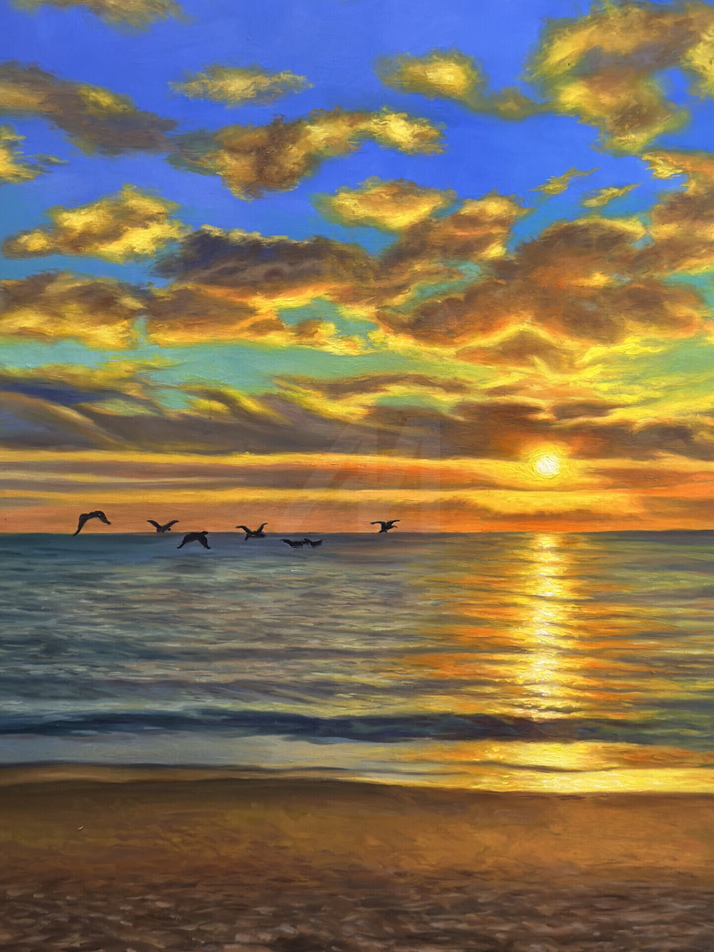 The paintings are created by me manually from beginning to end. Not a print, not a tinted photo, but handmade.