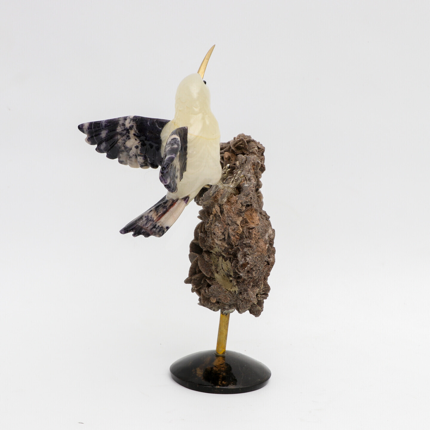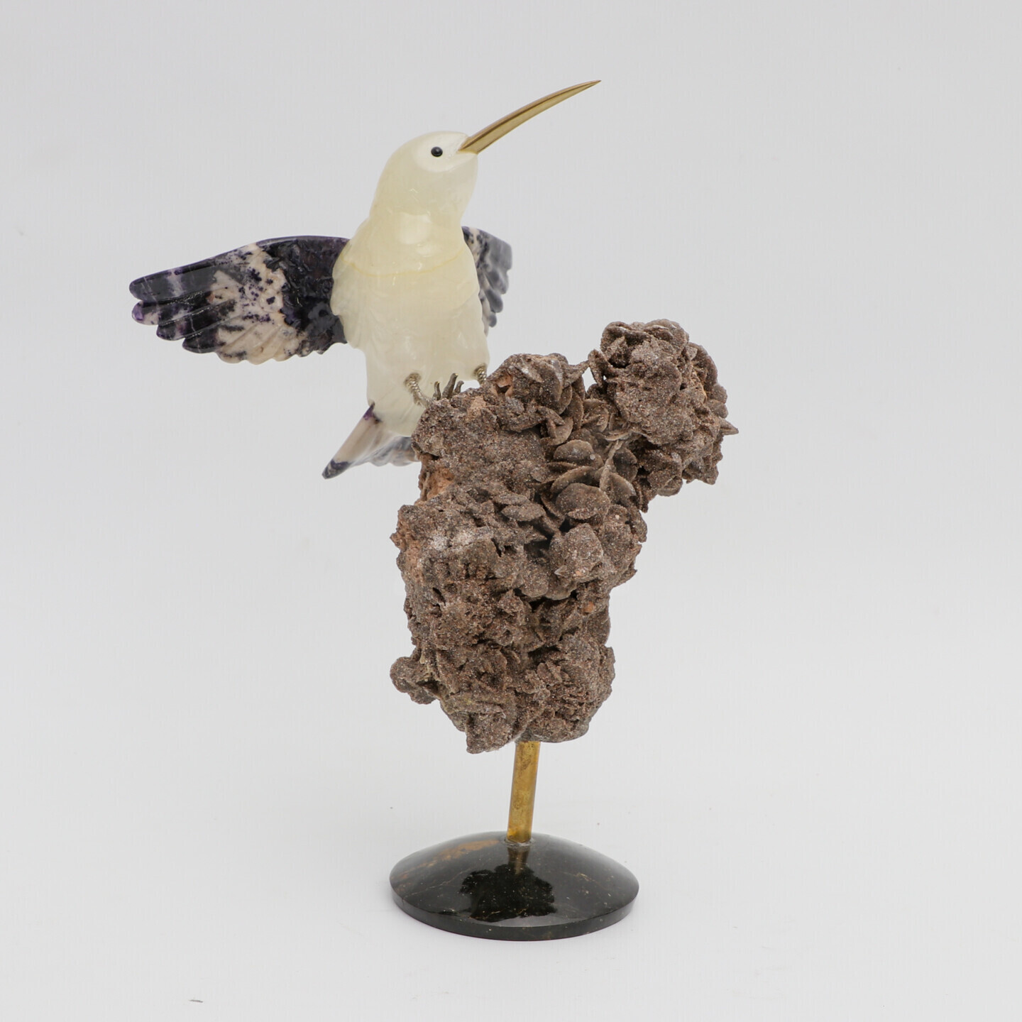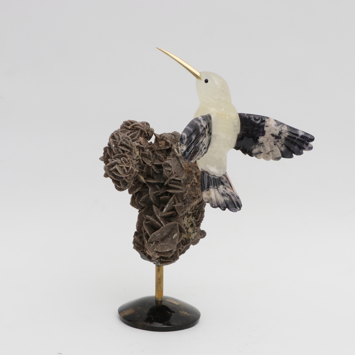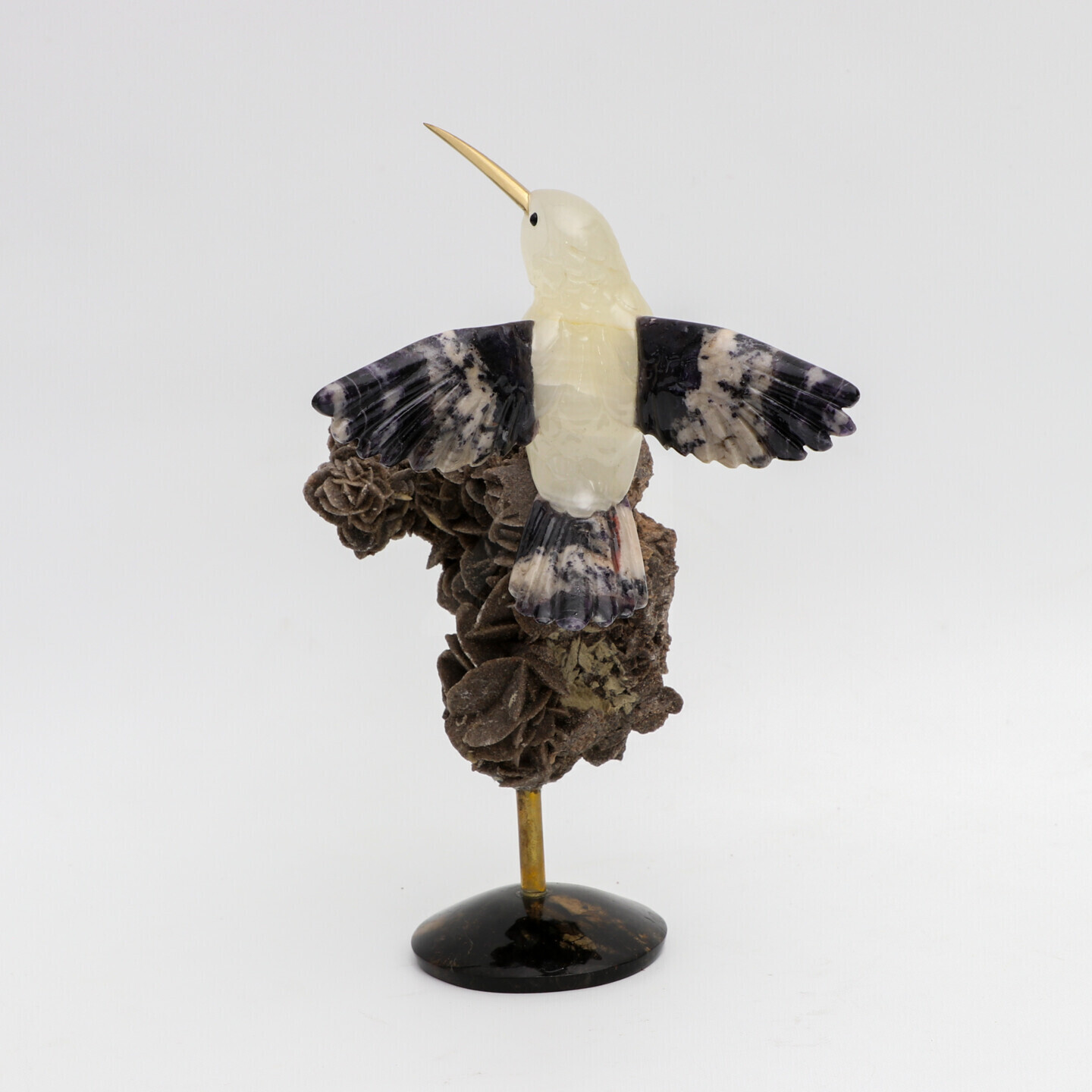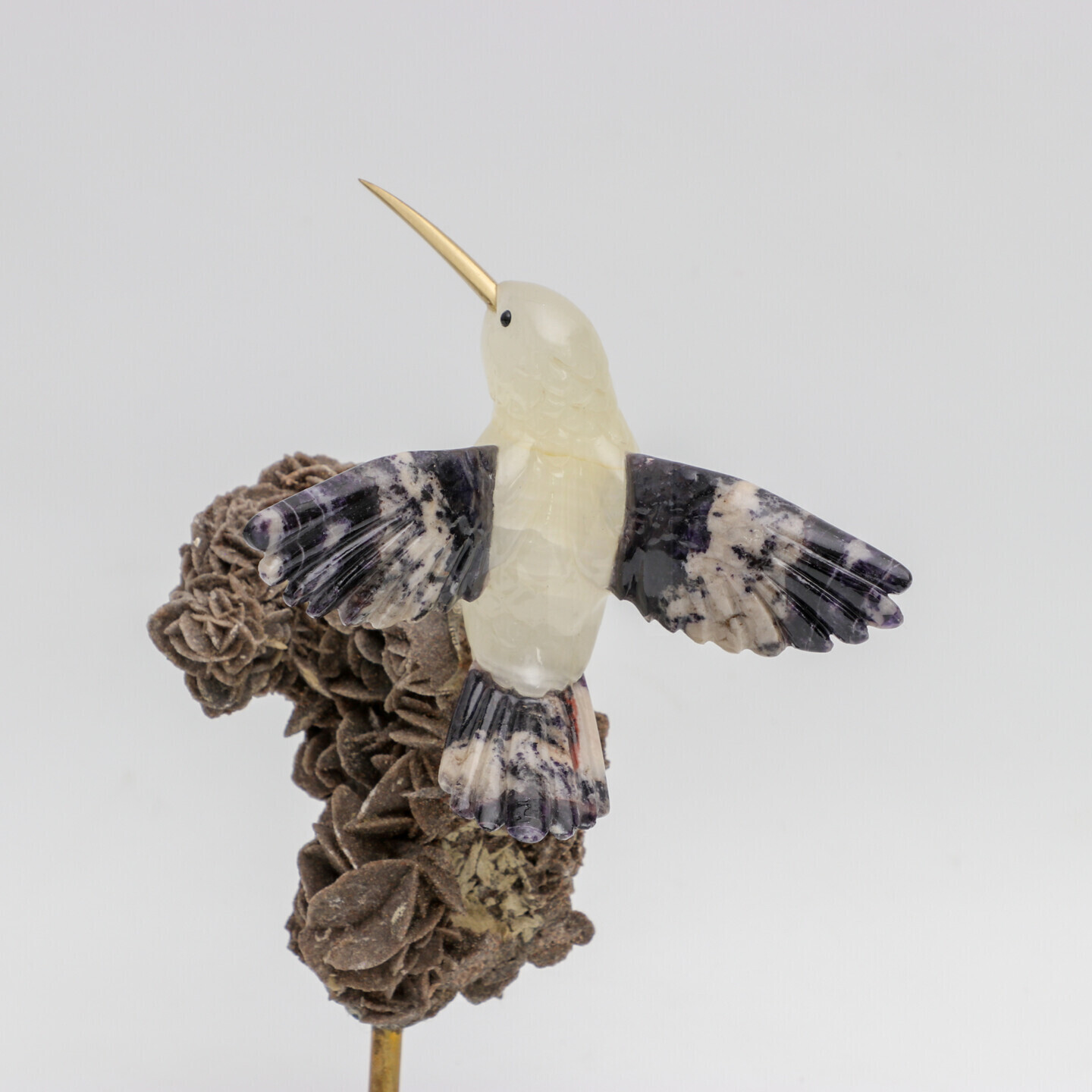 Este picaflor transmite la pureza y la fuerza de los paisajes áridos, recreado con una combinación magistral de piedras: