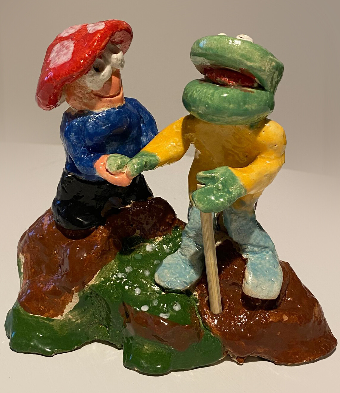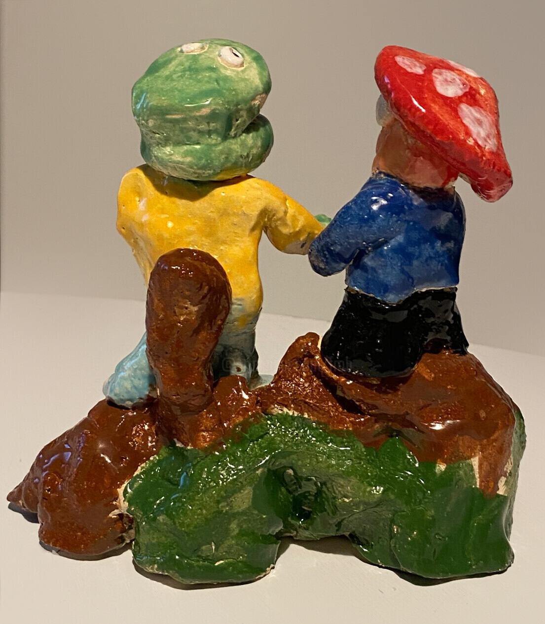 Frob's artistic influences include a love for coffee, a passion for comics reflected in bold black strokes in his compositions, and an initial inclination towards spitting portraits. However, he has transitioned towards a form of naive, raw, and free figurative art, a progression noted by his well-informed friends and family.