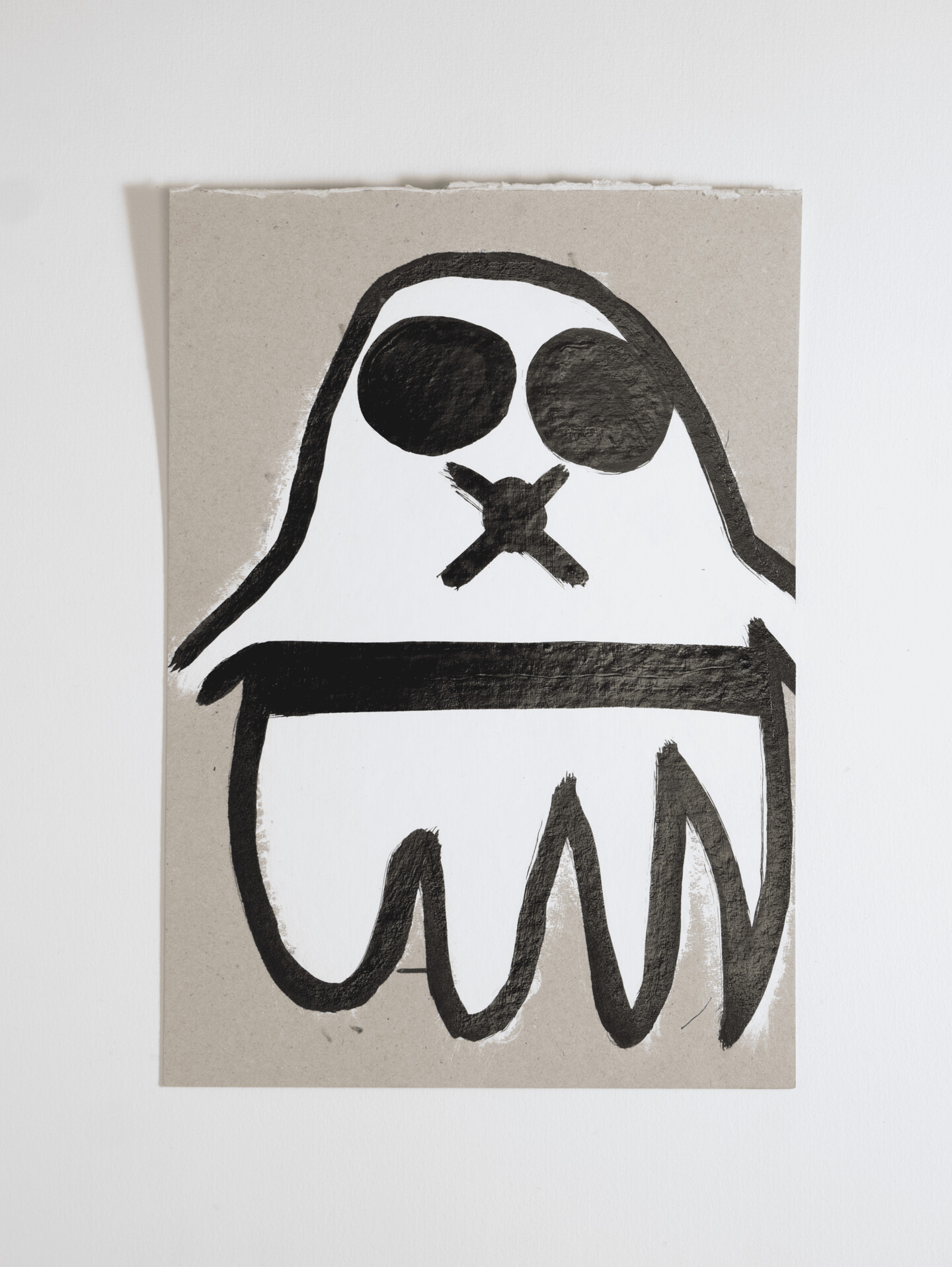 « A l’atelier, mon geste rencontre la surface du tableau. Toujours poussé par quelque chose de plus fort que ma volonté, des choses adviennent par mon action, je les fige et les laisse vivre par le regard. Le moindre trait en inspire un autre. Comme à la pêche, l’atelier fait appel à la ruse, au calme et à l’observation. La notion du jeu (du côté de l’amusement et de l’énigme à résoudre) est très présente. Avant tout, je prends plaisir à me laisser surprendre et étonner. Le traitement du dessin va au plus direct par une simplification schématique des éléments. Les quelques traits deviennent un signe reconnaissable. Dans ce sens, cette restitution de motifs agit pour le spectateur en symbole universel, comme un phénomène de déjà-vu. »
