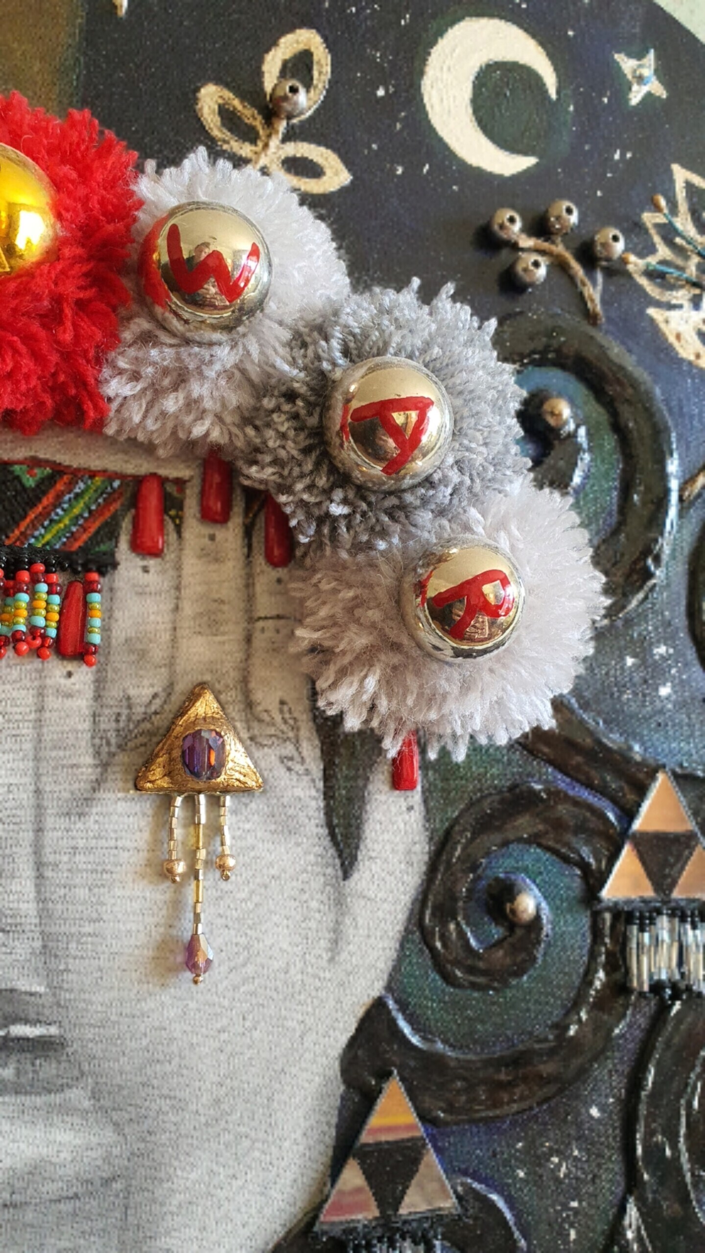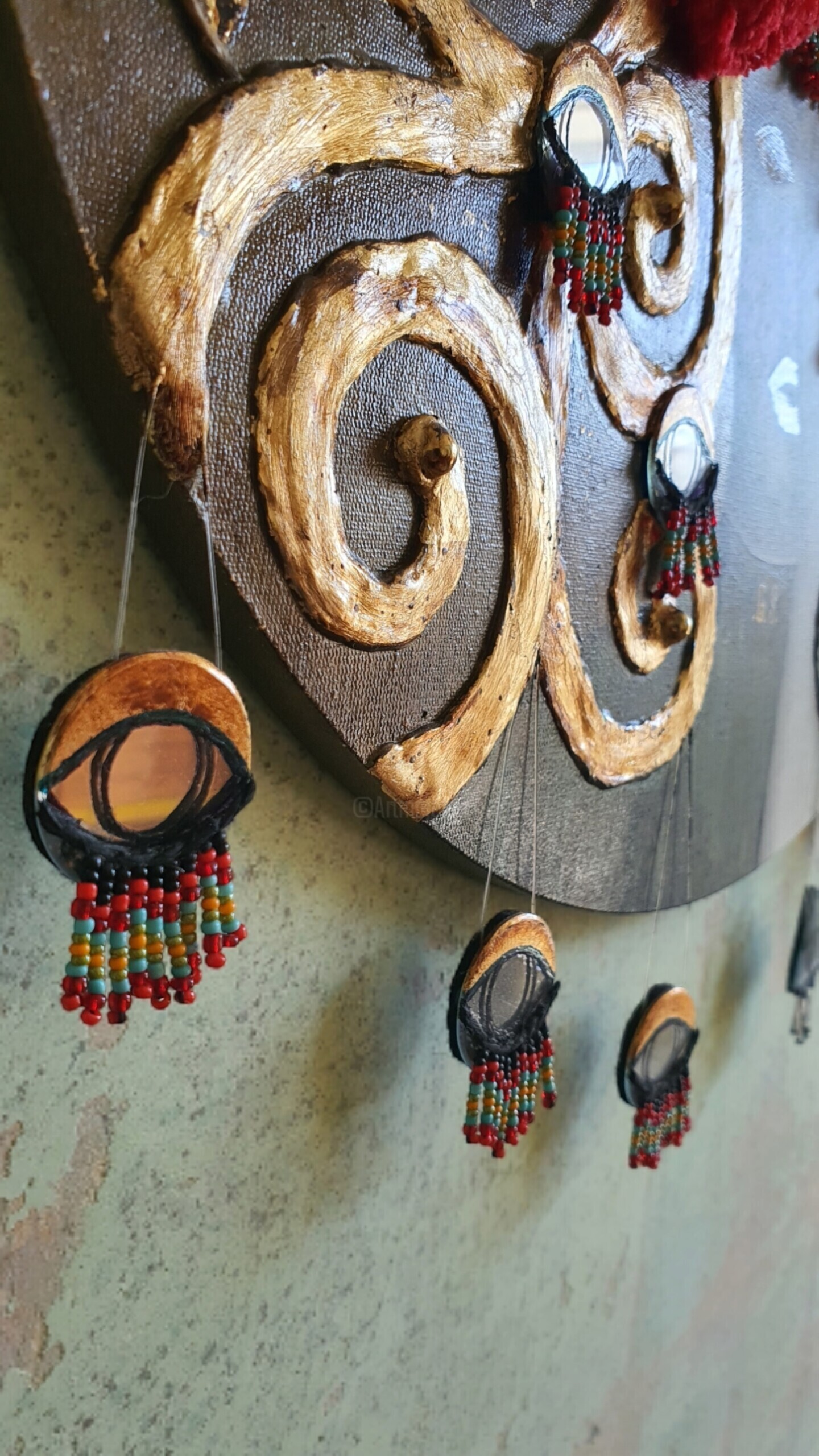 In the context of her works, eyes play the role of a portal, connecting the physical and the spiritual, the inner and the outer, the observer and the observed. They create the effect of the artwork "looking back" at the viewer, establishing a mutual connection.