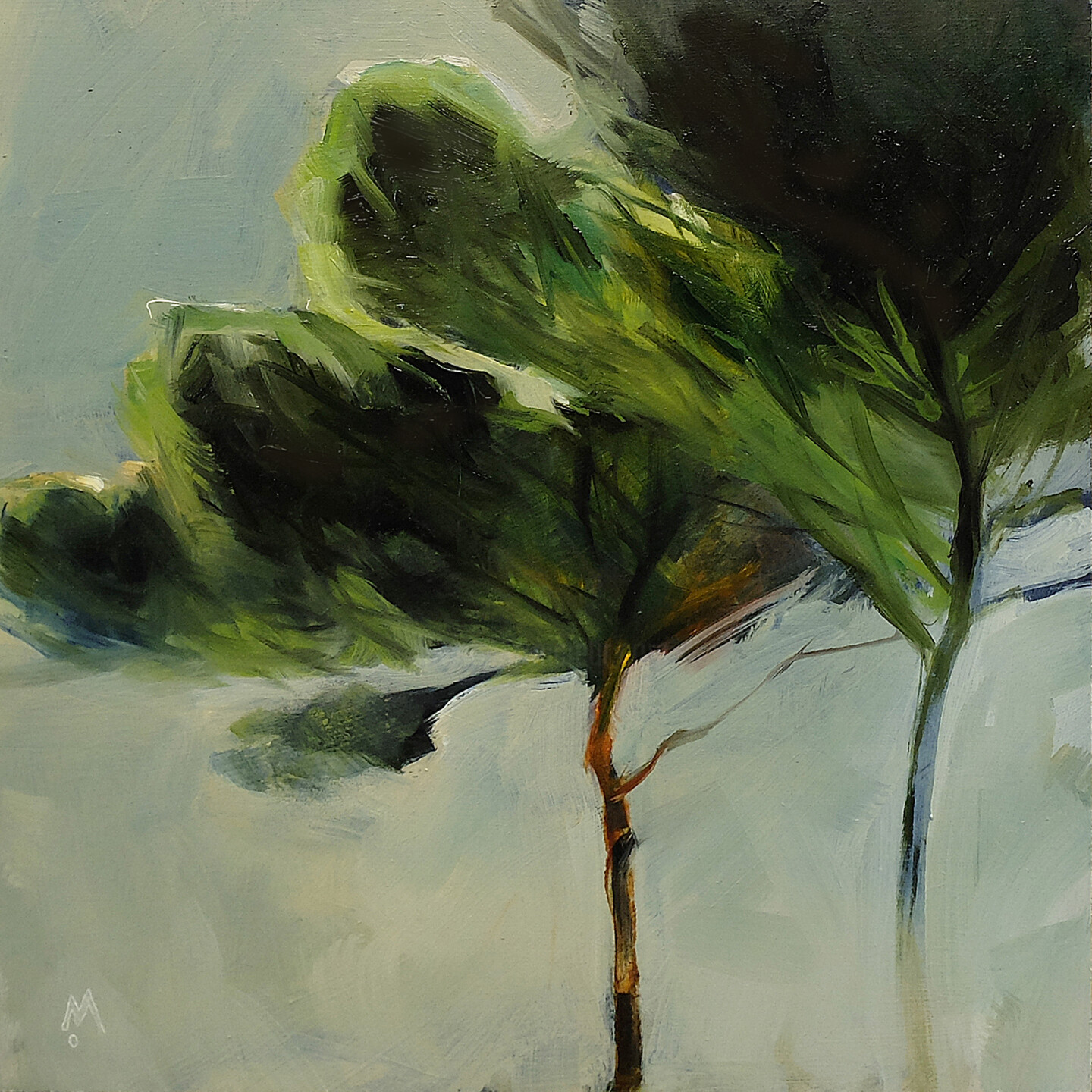 Au tout début, influencé par les impressionnistes, je recherche maintenant à synthétiser par la forme et la composition, le mouvement qu’il y a autour de nous surtout dans les paysages, les arbres et les ciels.