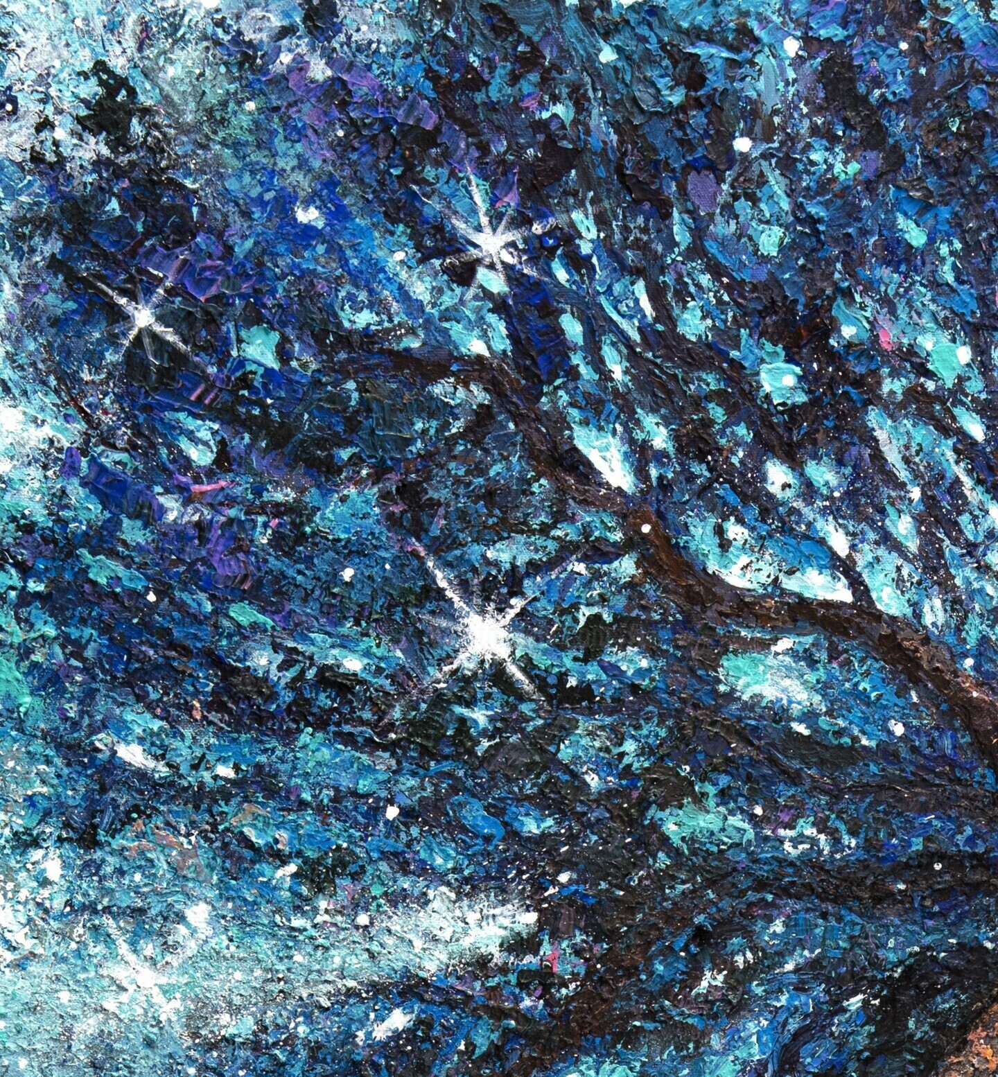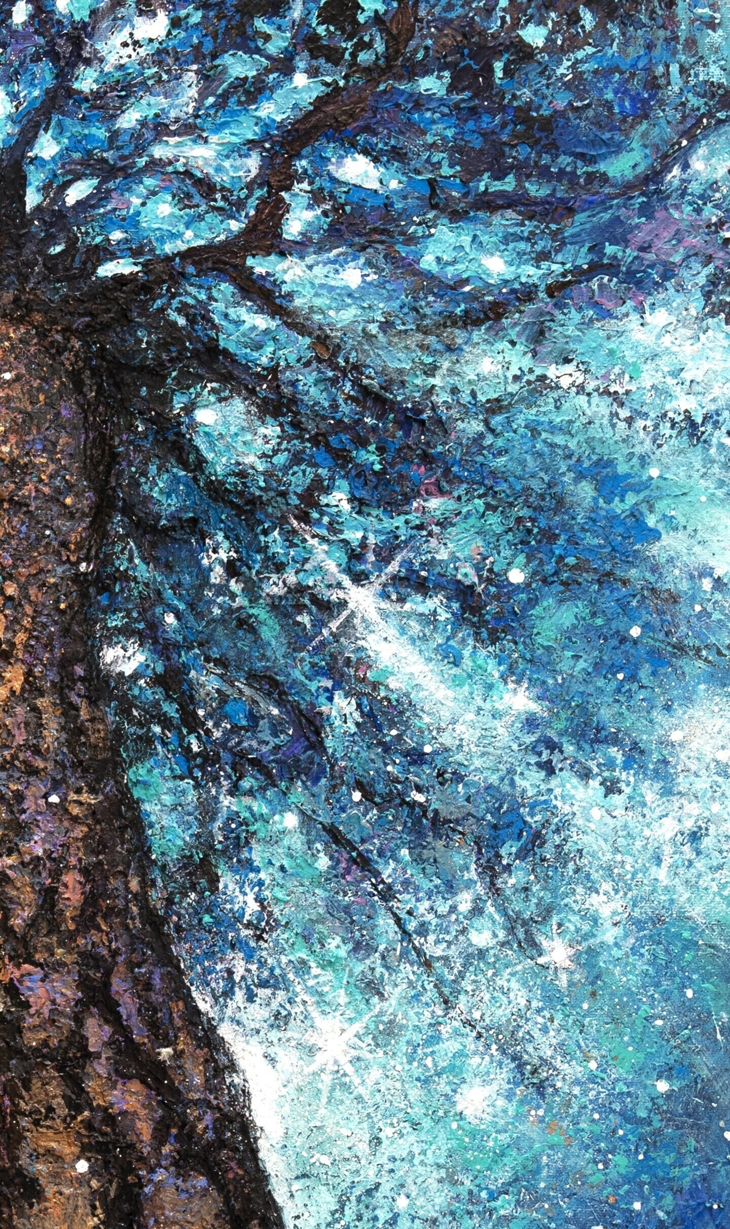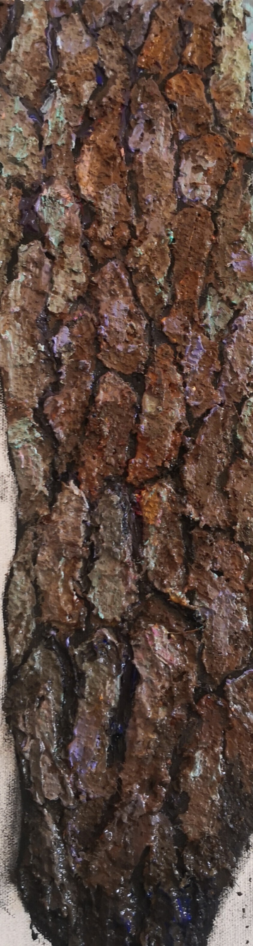 Dans ces grands portraits d’arbres, Joss saisit leur trait distinctif, leur force, leur présence, leur essence. Aujourd’hui, ses travaux sont la synthèse de toutes ces années passées entre l’abstraction et la figuration. Ils l’ont conduit à créer une technique sur toile qui lui est singulière : elle donne du relief aux écorces par le travail de matière et une vibration et jeux de lumière dans les feuillages.