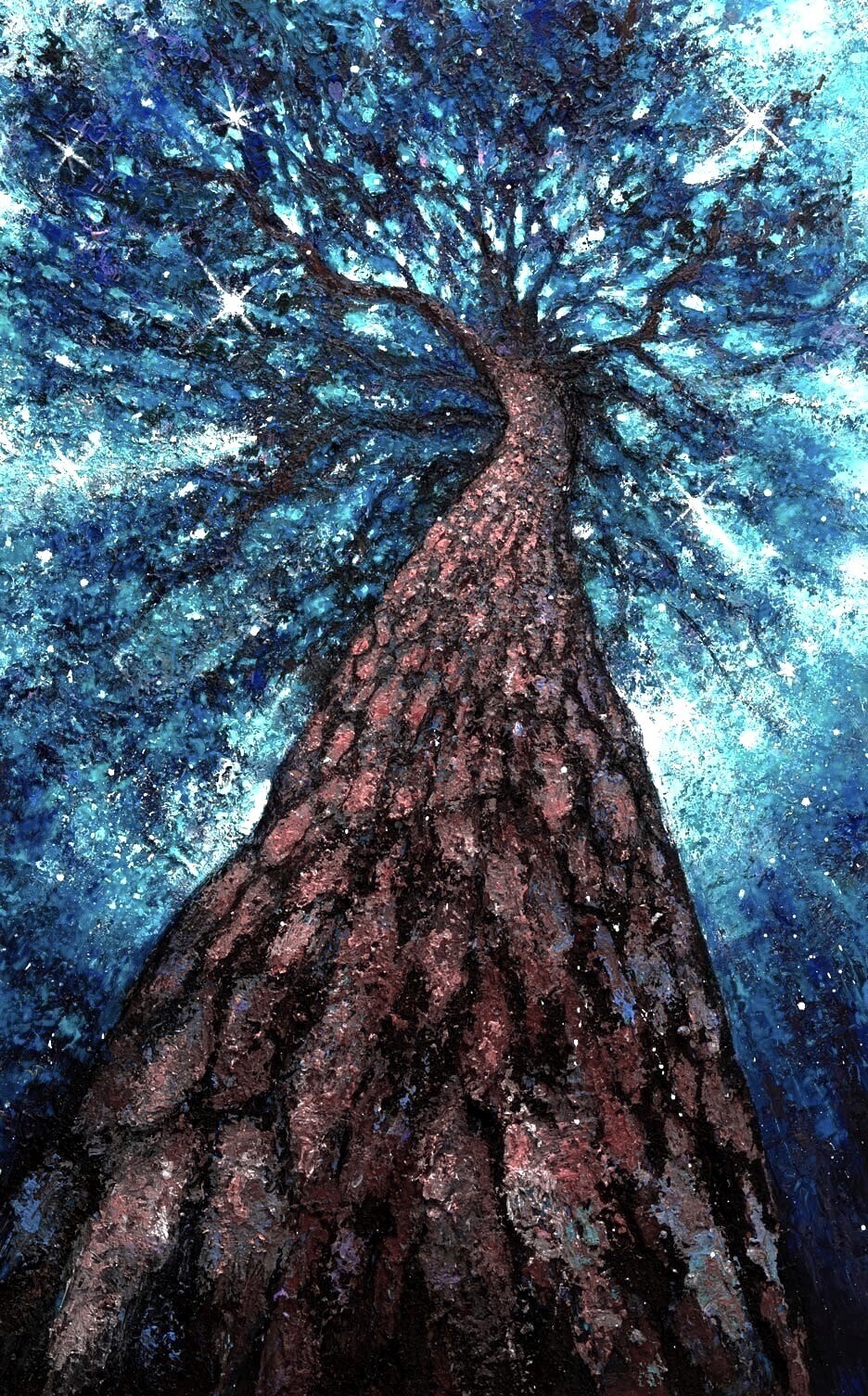 C’est en 2011 qu’elle fait une rencontre déterminante avec un Arbre Remarquable. À son pied, une révélation lui vint alors : ne plus aborder l’Arbre avec un affectif humain, mais essayer au contraire de le peindre comme un être à part entière, pour lui-même (à l’instar de portraits d’enfants, de femmes et d’hommes dessinés, « transpercés » peints maintes fois dans le passé...)