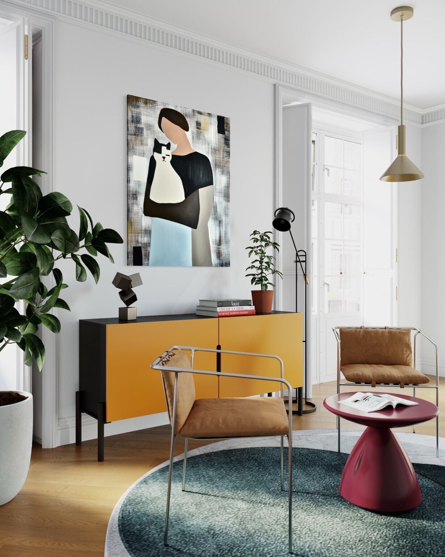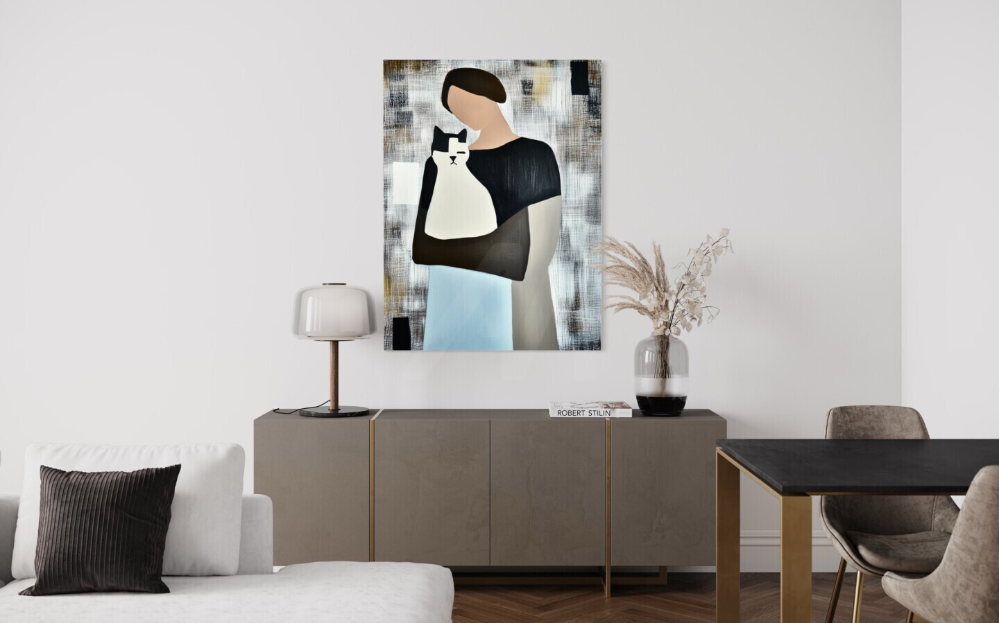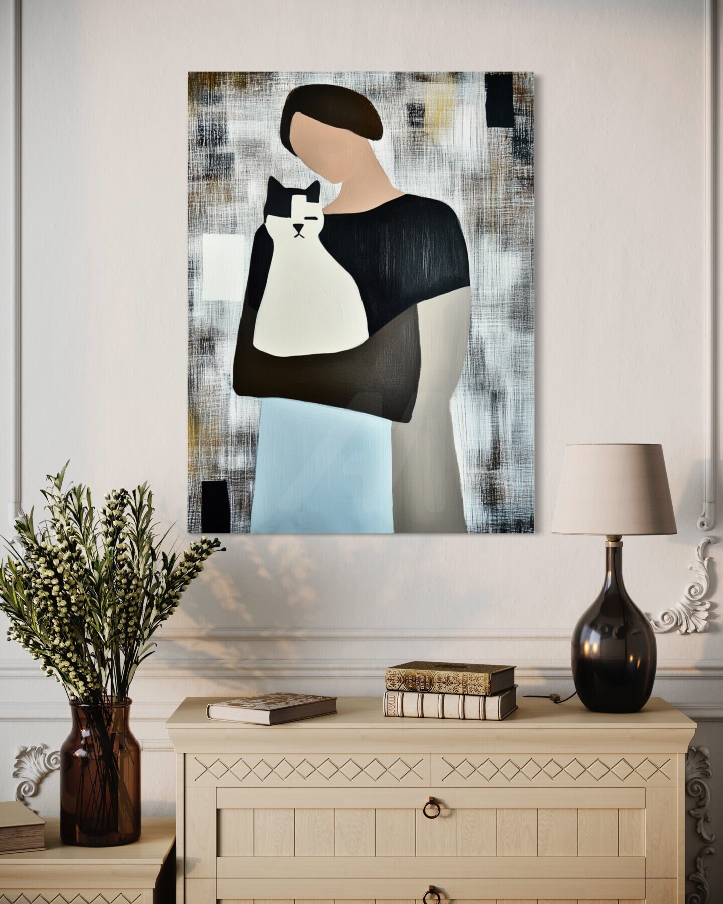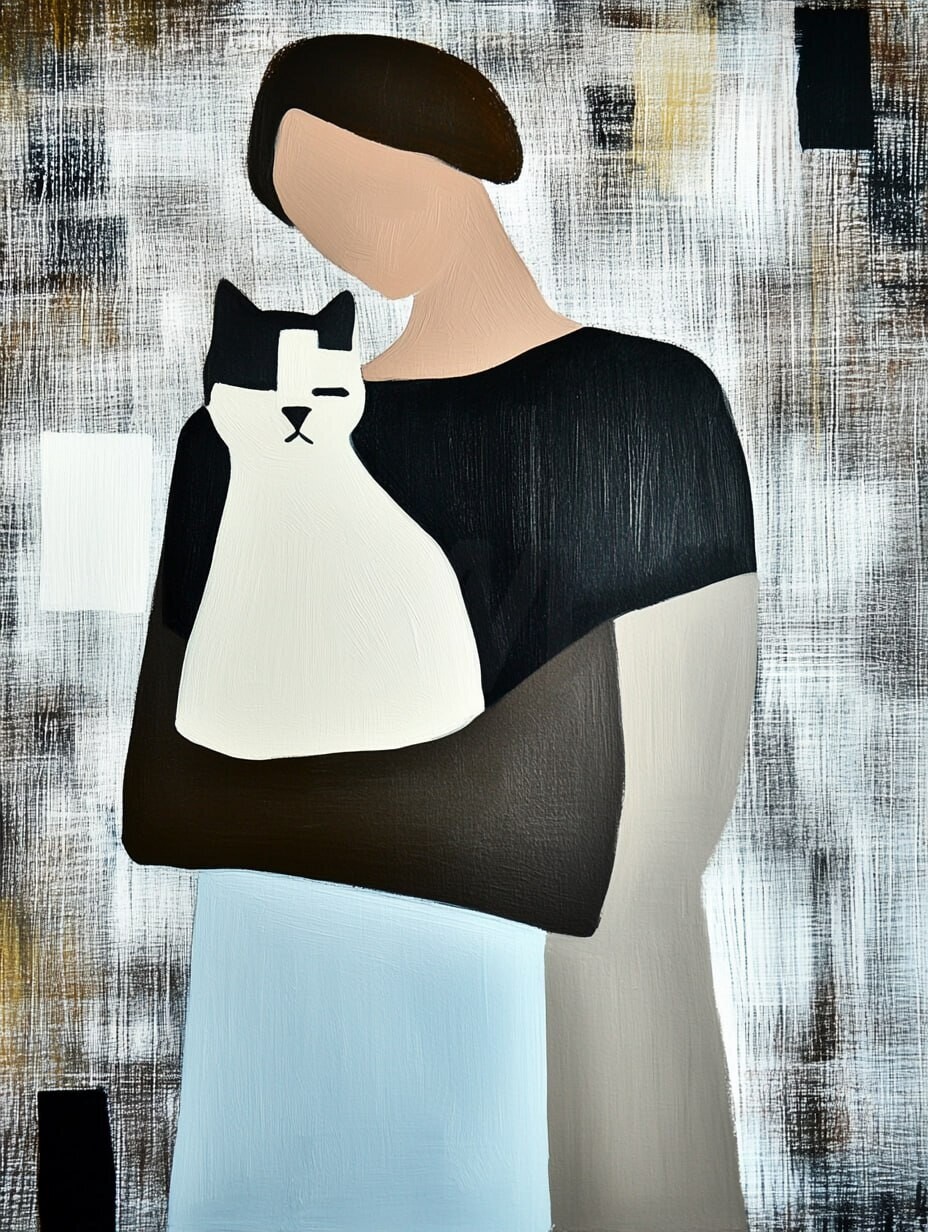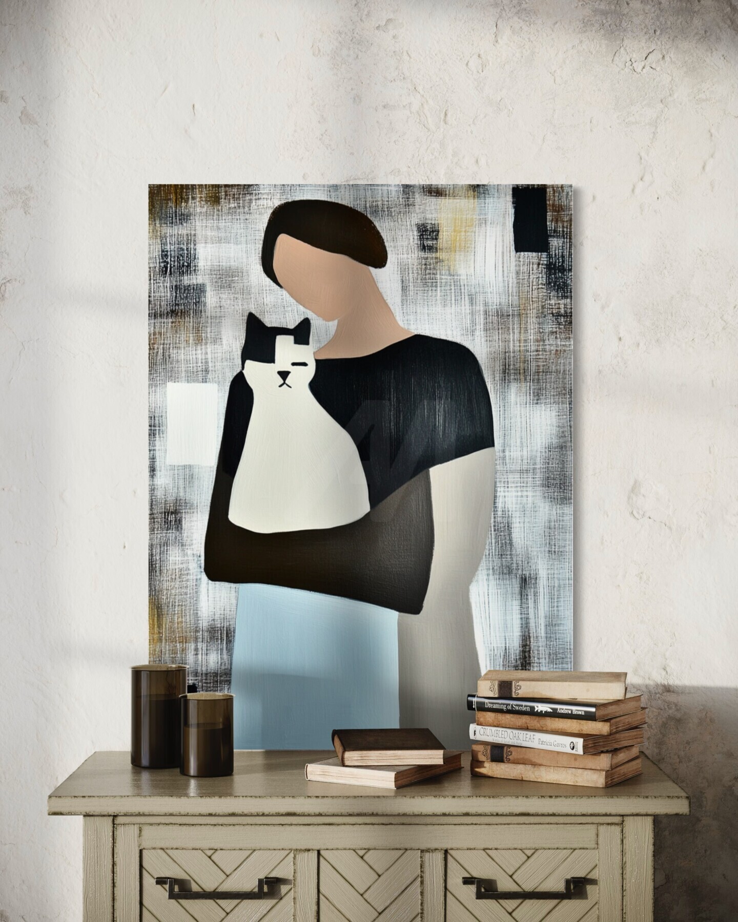 Фотобанк для художественных фотографий#Abstractart#Figurativeart#Minimalistpainting#Womanandcat#Catpainting
