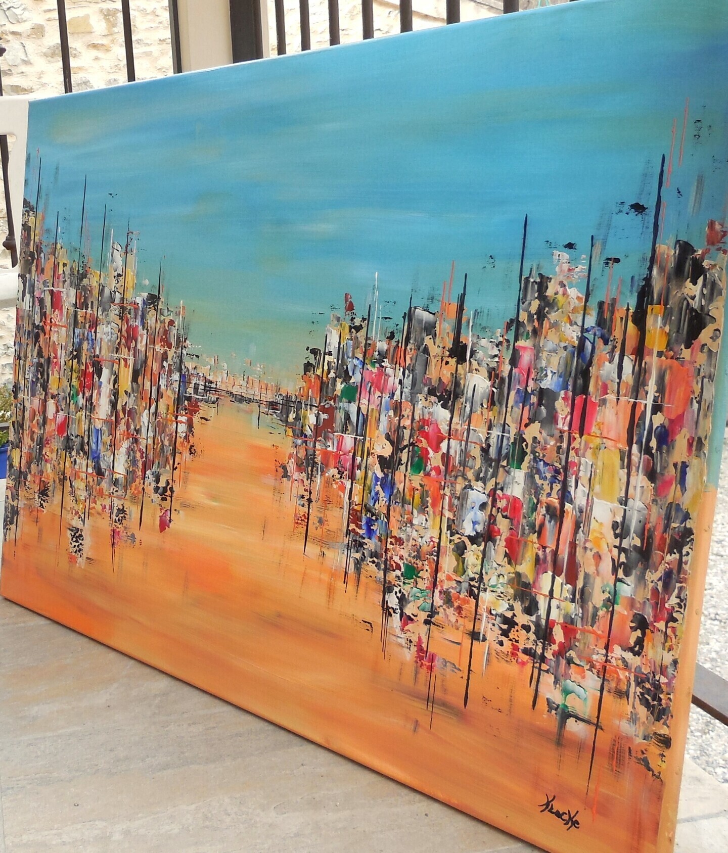 Mon souhait est que les spectateurs se laissent porter par ce qu’ils ressentent en regardant mes toiles. Je mets un point d’honneur à ne pas omettre la dimension humaine au travers de mes toiles ; l’explosion de couleurs en est la preuve : essayer de provoquer de la joie, de l’émerveillement, de la sérénité, des émotions ! N’est-ce pas somme toute la finalité de l’art ?