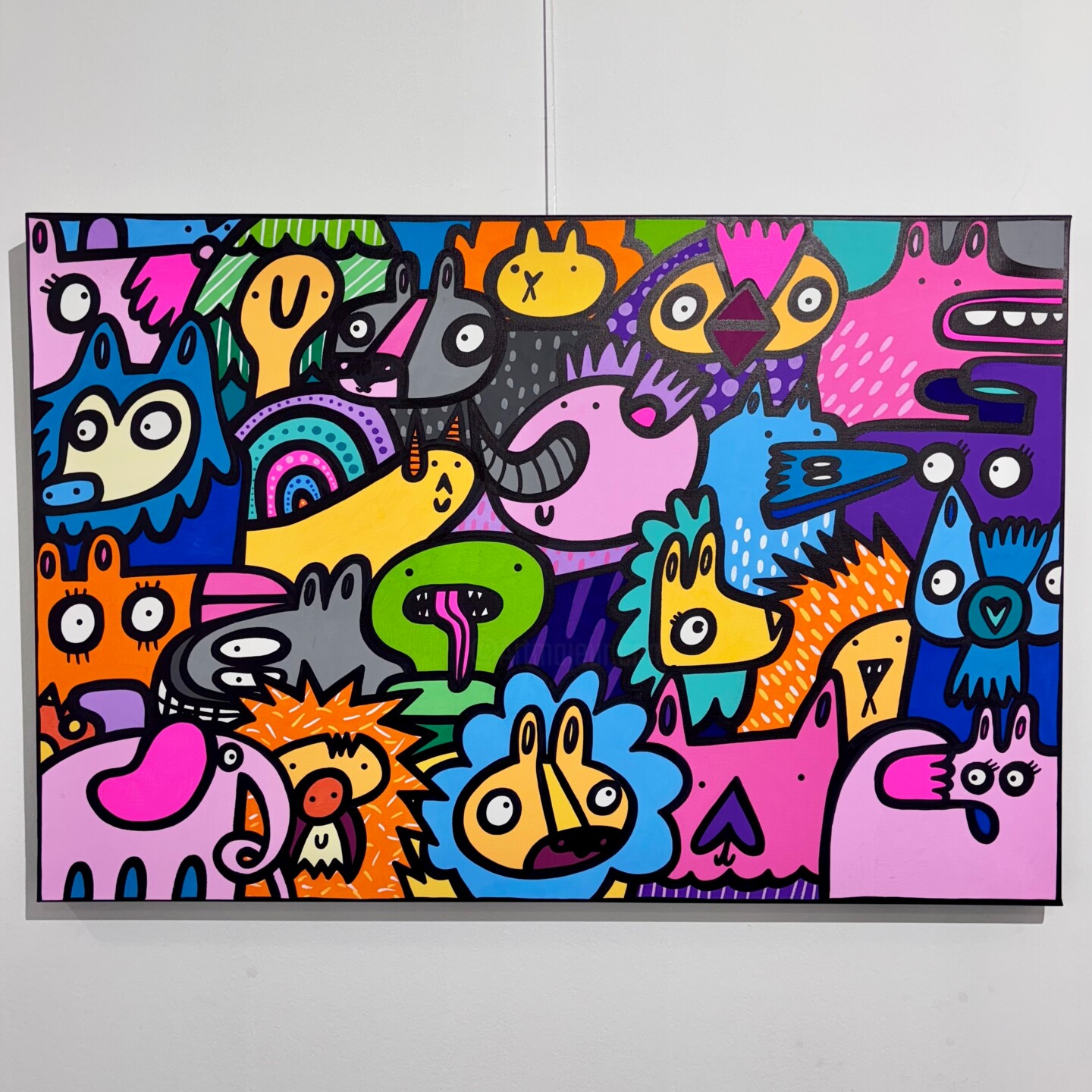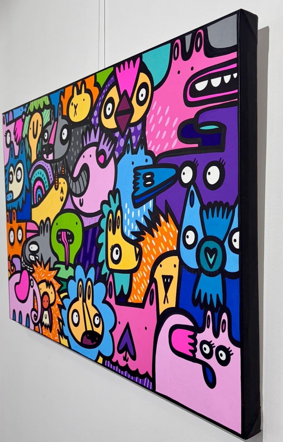Wyjątkowy styl Munday wykorzystuje odważne linie i żywe kolory bloków, co zapewnia hipnotyzujące wrażenia wizualne. Jego kultowe obrazy tłumu przedstawiają ogromne morze wyjątkowych jednostek, oddając hołd pięknu wynikającemu z różnorodności. W kompozycjach Munday każdy pojedynczy portret ma taką samą wartość. Patrząc zbiorowo, efektem jest uderzająca wizja wspólnoty, wykraczająca poza sumę jej poszczególnych części.
