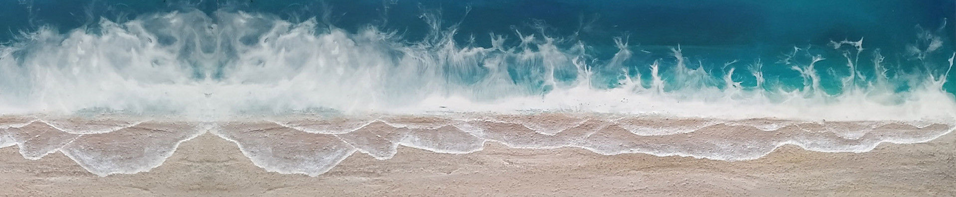 White beach, Santorini, Greece - Painting, 43.3x15.8 in ©2022 by Marianna Skartsari - Seascape, beach, sea, ocean, waves, santorini