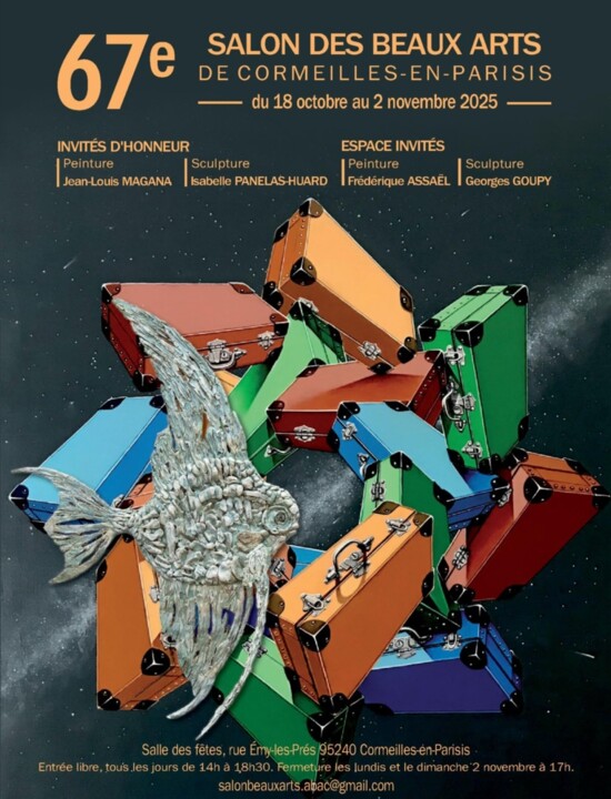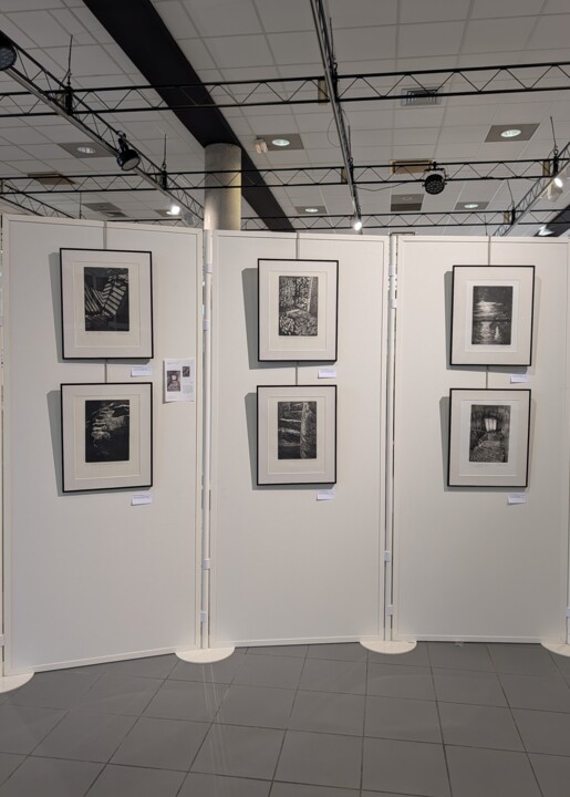 Habituée du Salon de Cormeilles depuis un certain nombre d'années, j'y expose les 3 gravures en noir et blanc que j'ai présentées en février 2025 au Salon des Artistes Français sous la verrière magnifique du Grand Palais.