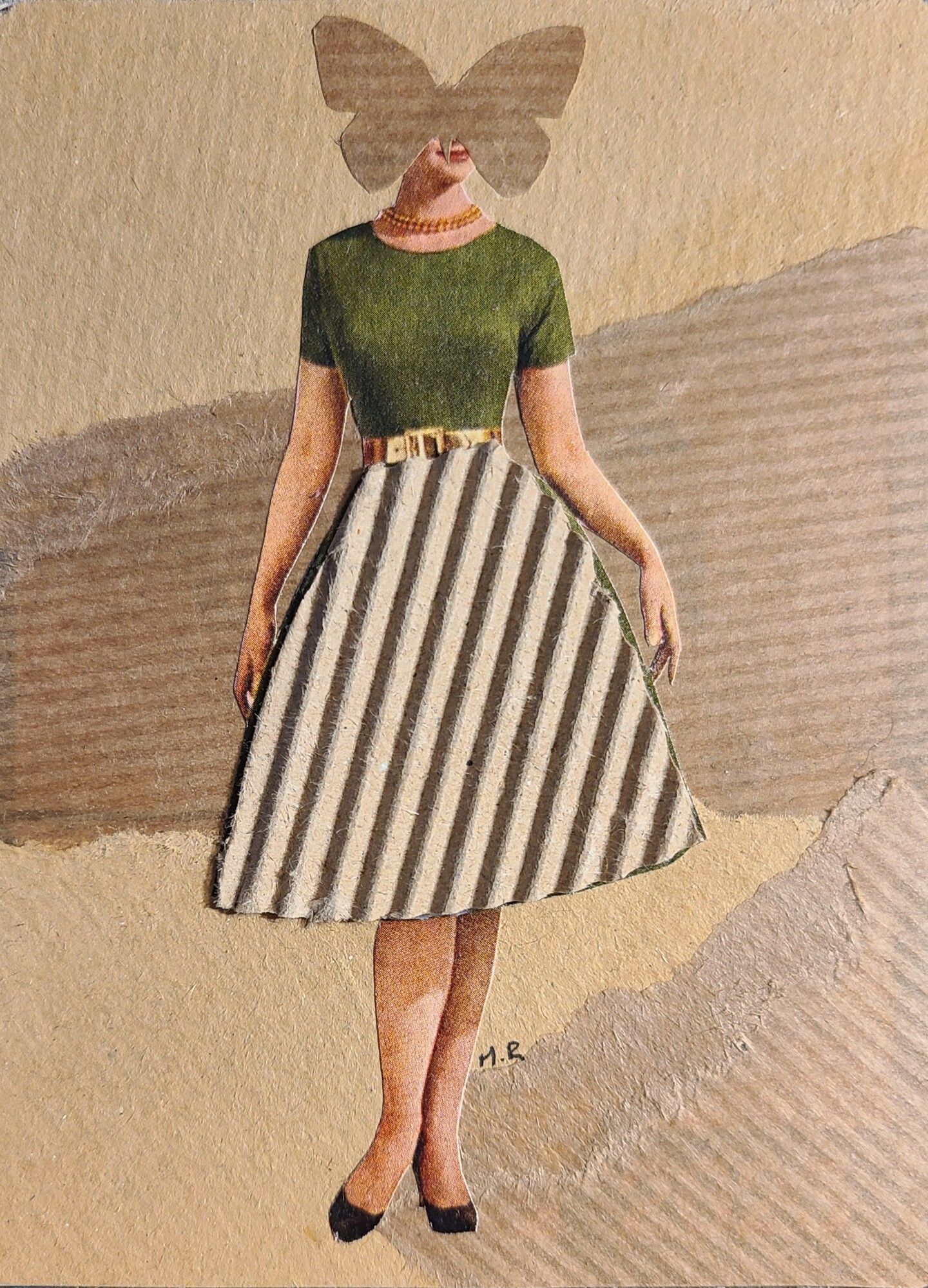 Attirée par la musique dans un premier temps, elle dessine, coud, chante, photographie et c’est finalement le collage et la sculpture qui lui permettront de s’exprimer pleinement.