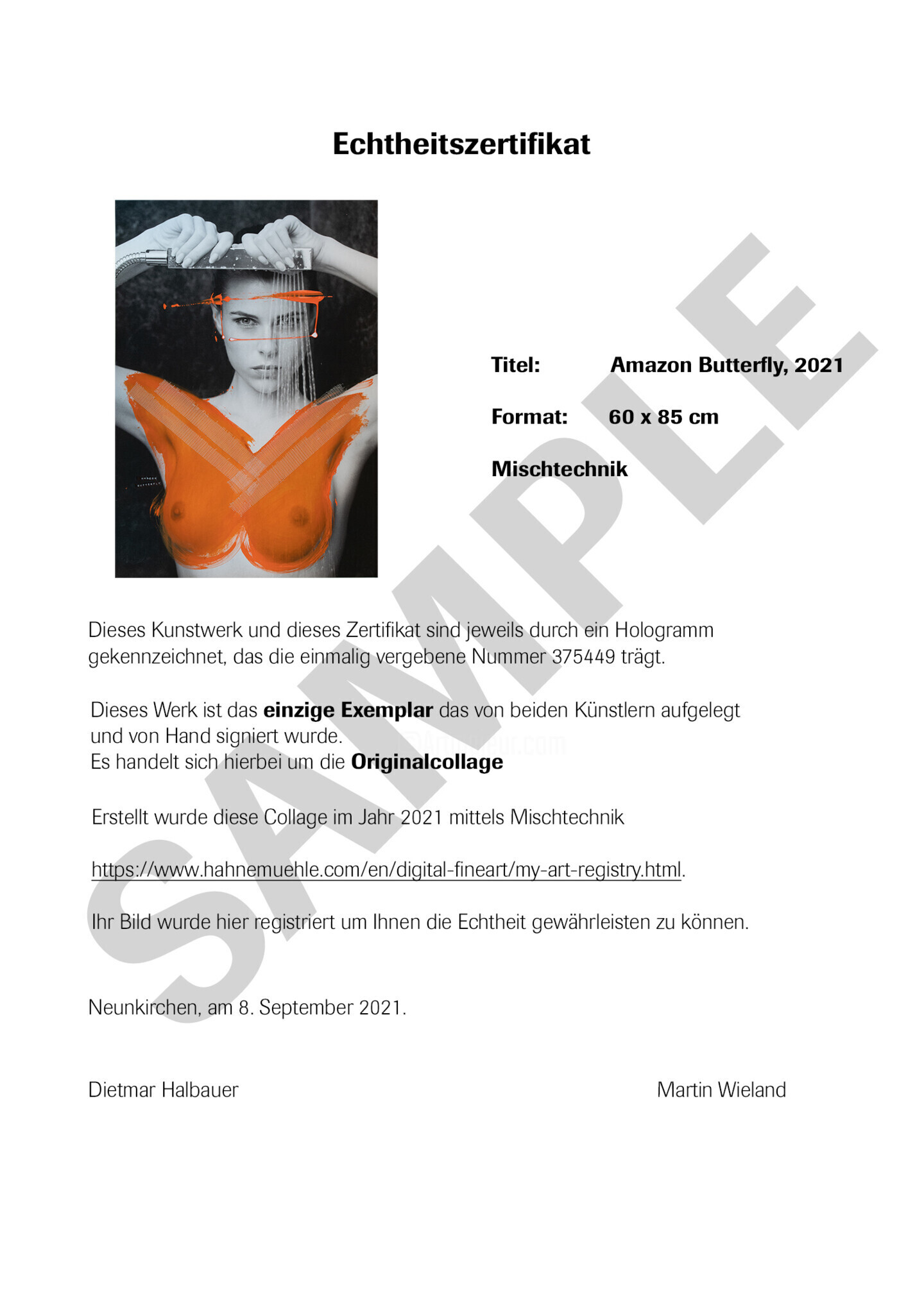 • Trackable Online Certificate of Authenticity Authenticity Certificates can be verified online at any moment by scanning the artwork code.