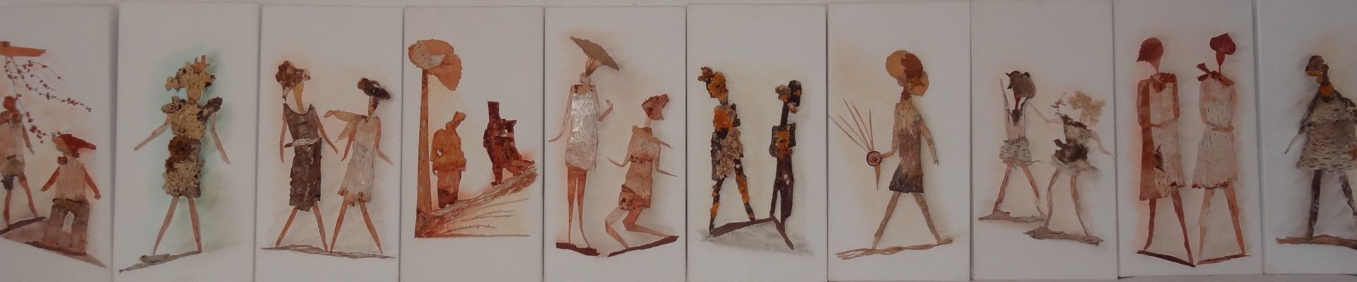 L' année 2010 - Approche sensitive et connexion dans la Nature. Découverte et rencontre de la matière au travers de l'Arbre : l' Ecorce et ses multiples facettes. Le potentiel esthétique de l'Ecorce est sans limite. Utilisée sous toutes ses formes, à l'endroit, à l'envers, en épaisseur, en finesse, en couleurs suivant les saisons sur un support toiles 3D et récemment sur feuille de papyrus antique.