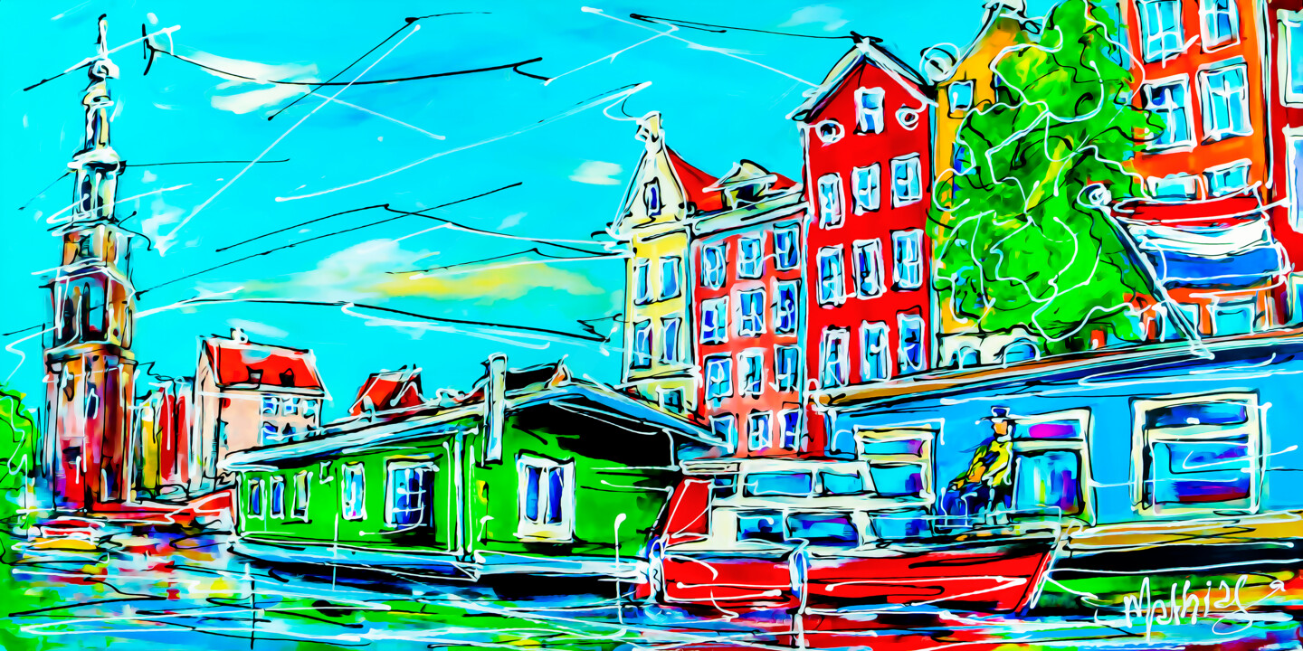 Mathias' paintings, inspired by the streets and canals of Amsterdam and other Dutch cities, the animal world and still lifes with typical Dutch tulips and sunflowers, take the viewer into a world of vibrant energy and expression. Our space is filled with colors and emotions conveyed by the artist through his expressive lines and unique style. Kleine Atelier is the ideal place for art lovers looking for works that reflect the dynamism and diversity of contemporary creativity.