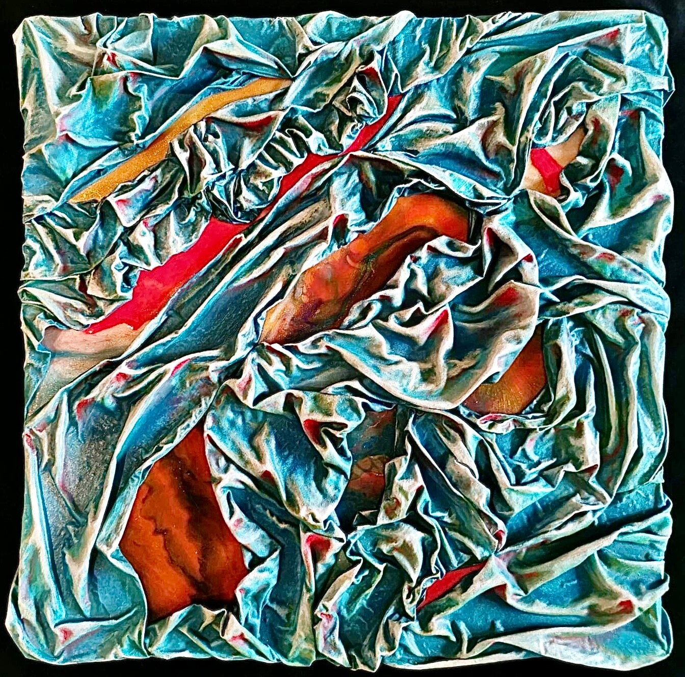 C’est en analysant l’être humain autant dans sa force que sa fragilité qu’elle créée, utilisant principalement acrylique, encre et peinture aérosol. D’autres matériaux, tel tissus et mortier, entrent dans la composition. Mouvements et formes se prononcent. Les tons utilisés sont contrastés, la lumière et la transparence sont omniprésentes.