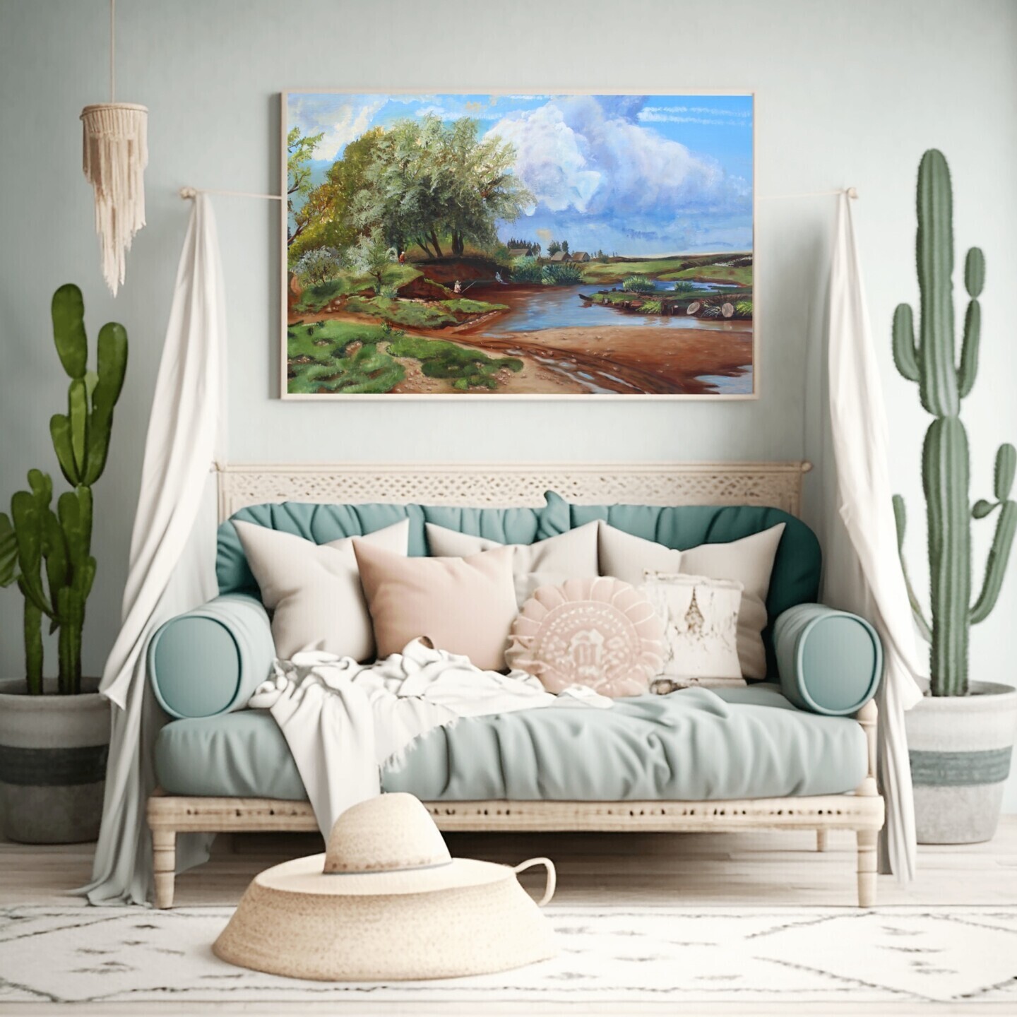 Banque d'images artistiquesRustic PrintRustic Wall ArtPicturesque RiverRiverscapeVintage Nature Art