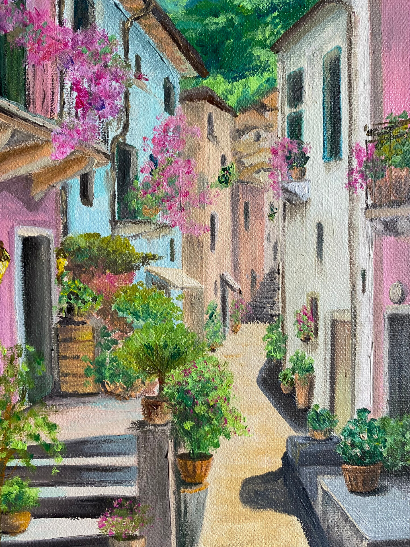 My passion for travel helps to draw inspiration from the world. I especially love walks along the streets of old cities and villages, where each street and an architectural element tell their unique history. These impressions are reflected in my works, filling them with warmth and liveliness. Although I traveled a lot, every new place leaves a special trace in my heart and expands the horizons.I am looking for inspiration for my paintings in simple things - in architecture, natural landscapes and cozy corners of villages.