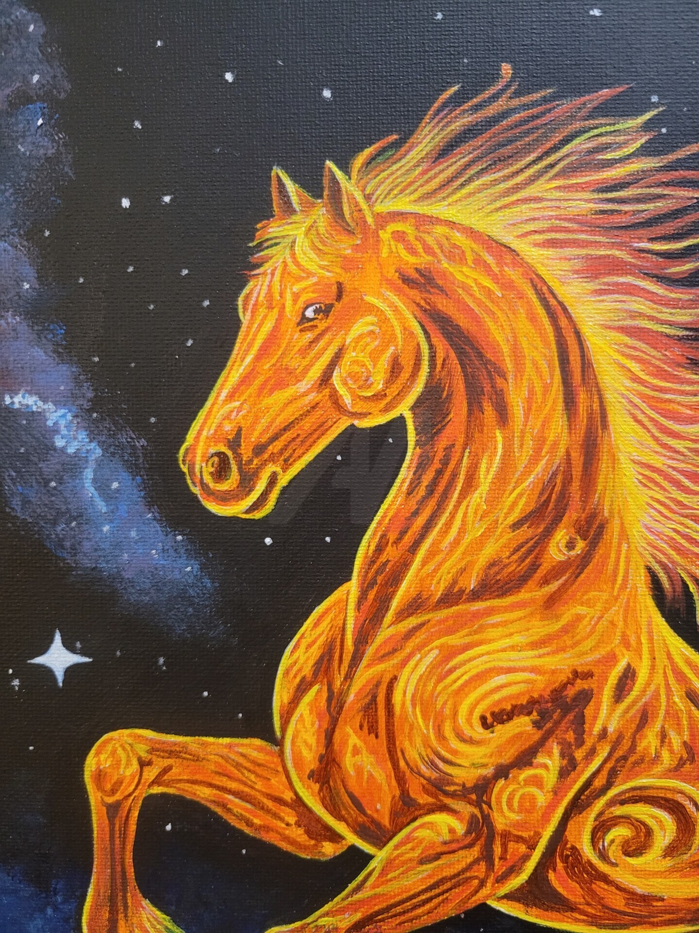 In my work, I combine the power of hyperrealism with the tactile magic of texture paste and the shimmer of gold leaf. The paste gives my images a physical, tangible reality, while the gold leaf becomes an inner light that reveals the magic in every narrative. This synthesis creates an effect of complete presence, inviting the viewer to step into the painting.