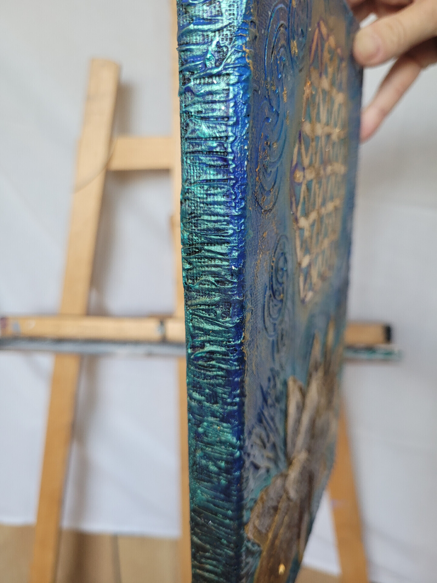 My ideas are born from impressions, dreams, and dialogues, taking shape through a search for imagery and modern tools. My final touch is the glow of gold leaf, which, sealed with varnish, preserves this magic for centuries. I believe that art is a bridge between an inner feeling of harmony and the external, already perfect world."