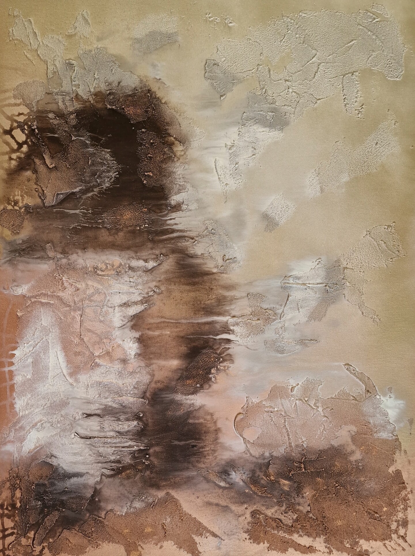 Her work is deeply rooted in abstraction, a style she loves for its capacity to invite personal interpretation. Each piece offers a dialogue with the viewer’s inner world, unlocking emotions and memories through the interplay of color, composition, and texture. She finds joy in experimenting with textures, a fascination sparked during the pandemic when sensory experiences felt especially scarce.