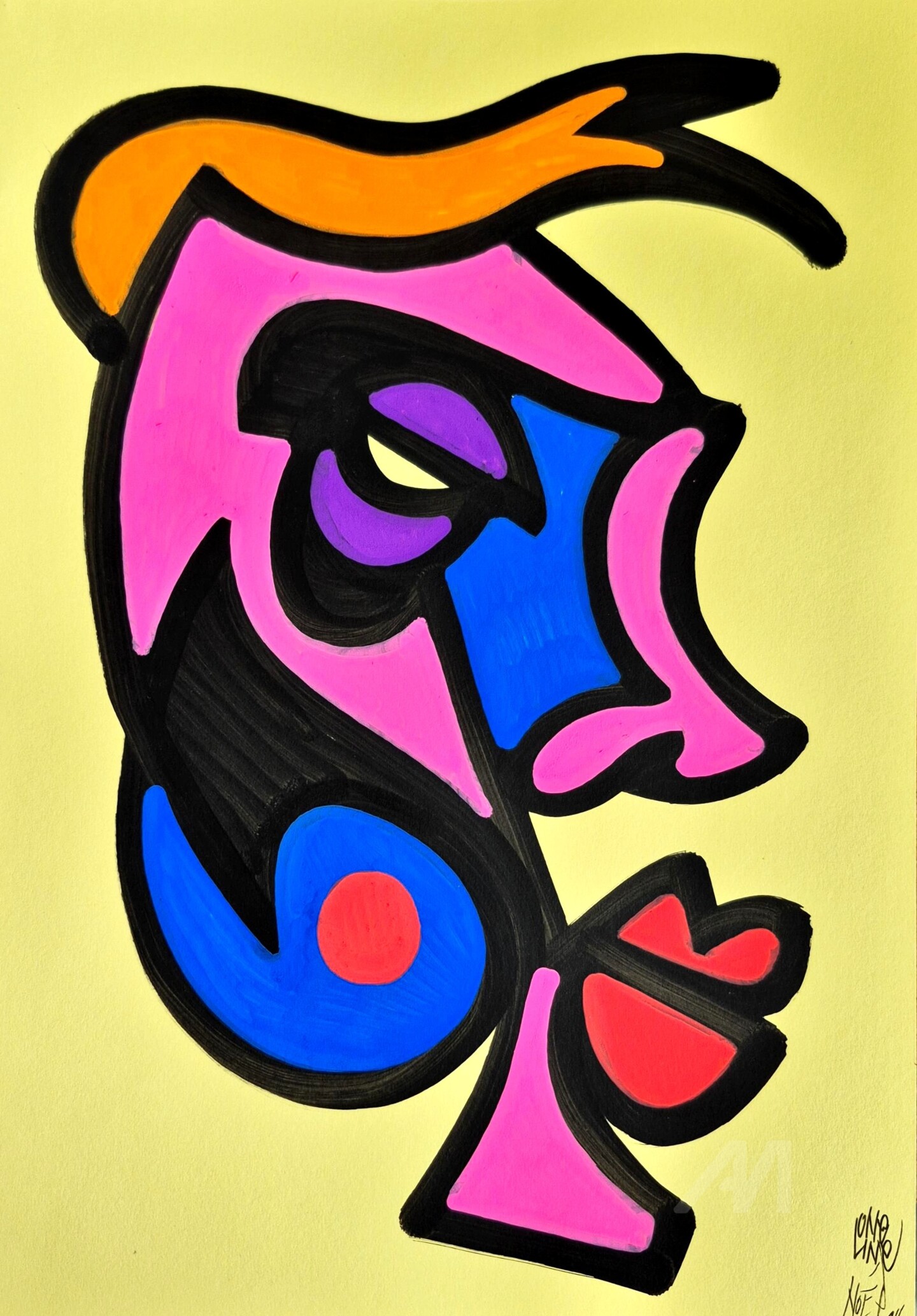 Ноэ Попорте — современный бельгийский художник. Он вырос в художественной среде как сын и внук художников. С 13 лет, после погружения в культуру хип-хопа, он находит свое место в нелегальном царстве граффити и тегов, что дает ему прилив адреналина, которого он жаждет. Три года спустя он принял решение начать работу над своим первым полотном, где граффити исчезает, открывая целую серию воображаемых персонажей, которые, когда мы отступаем, создают лицо. Эта озабоченность лицами и их выражениями быстро превратилась в фирменный стиль художника.