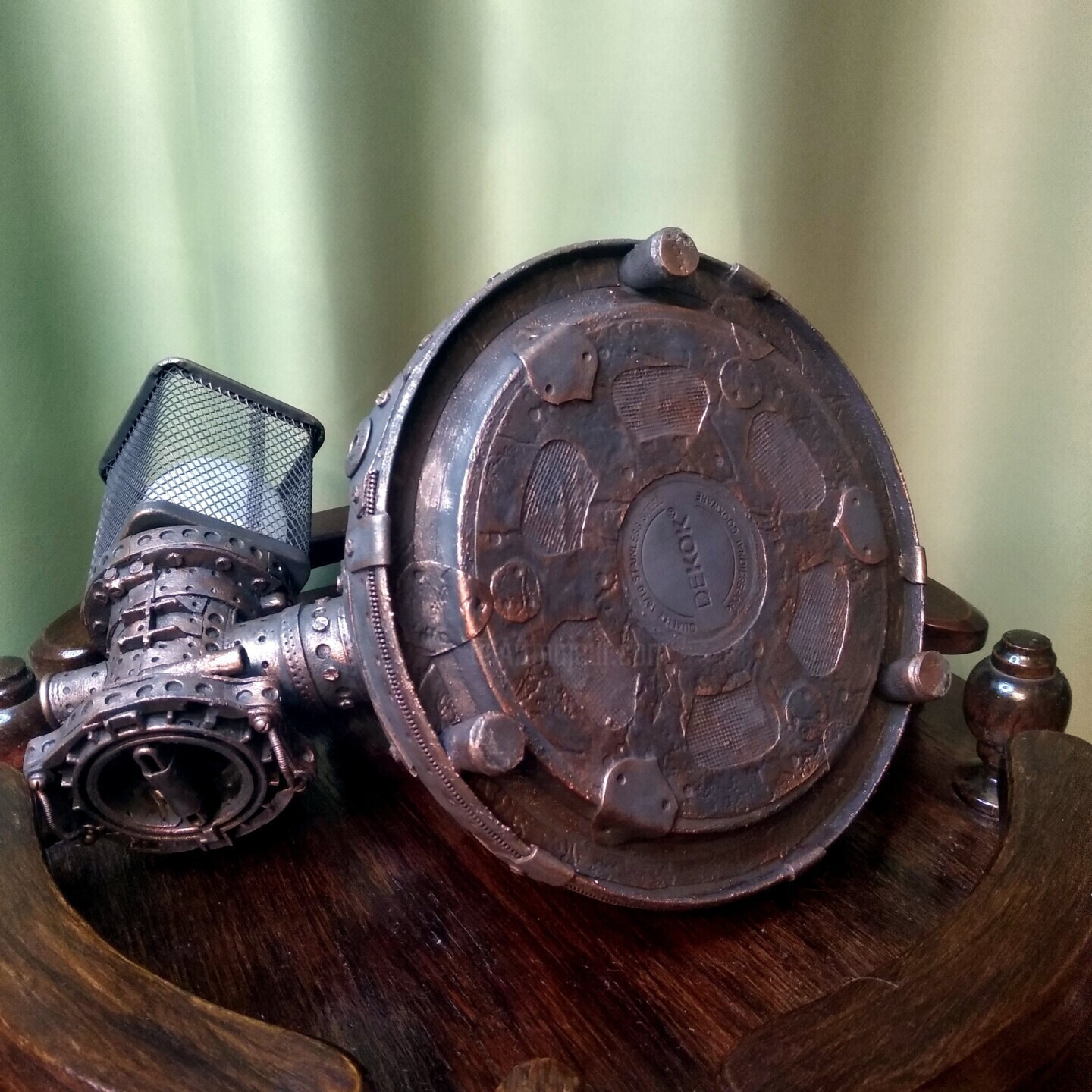 В 2022 году я начал делать первые работы в стиле, который принято называть стимпанком, но мне ближе другое определение — «хлам-проекты». Я создаю их из предметов, утративших былую функцию: старые игрушки, бытовая техника, фурнитура, механизмы. Всё, что когда-то кому-то служило, — обретает новую жизнь в моих руках.