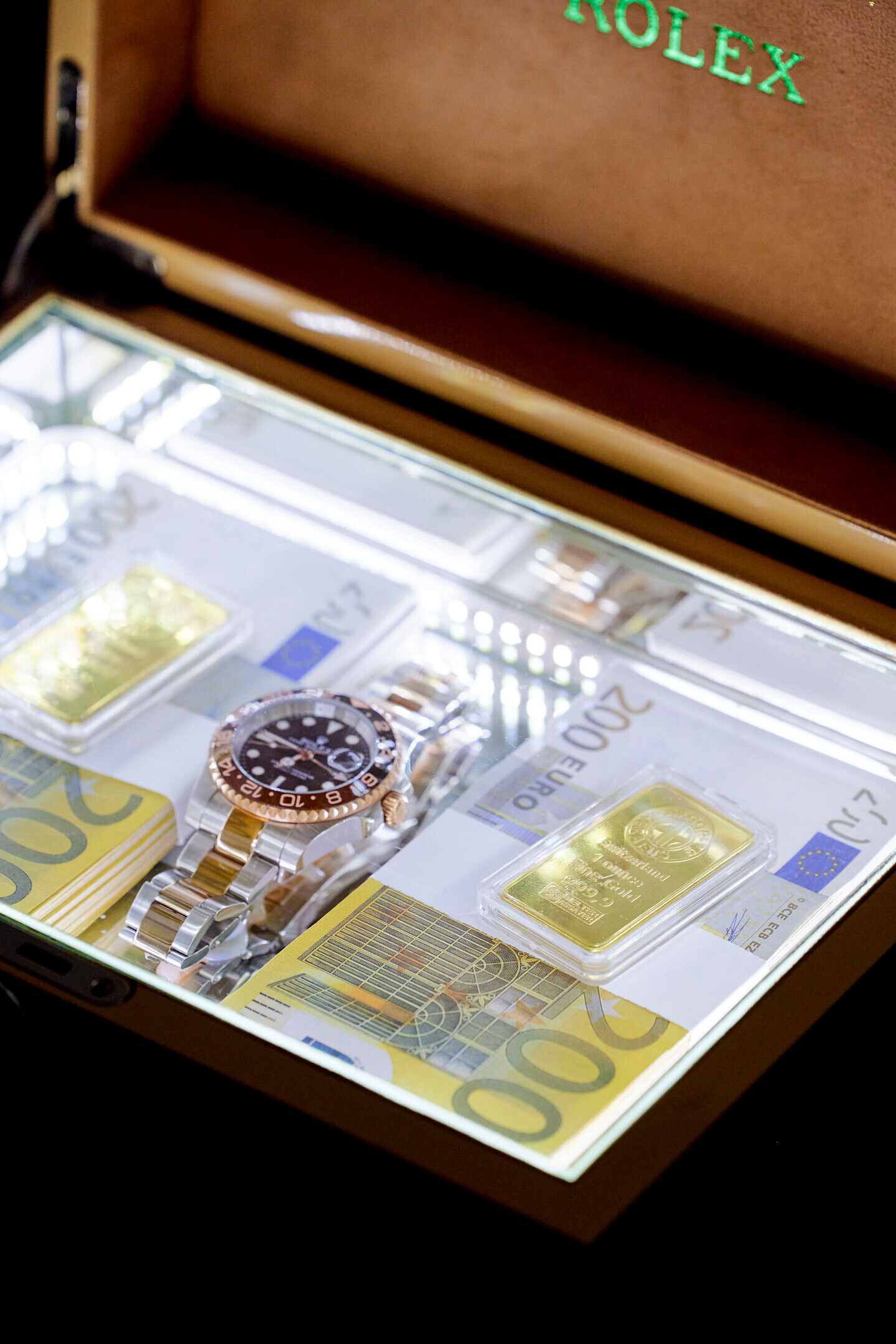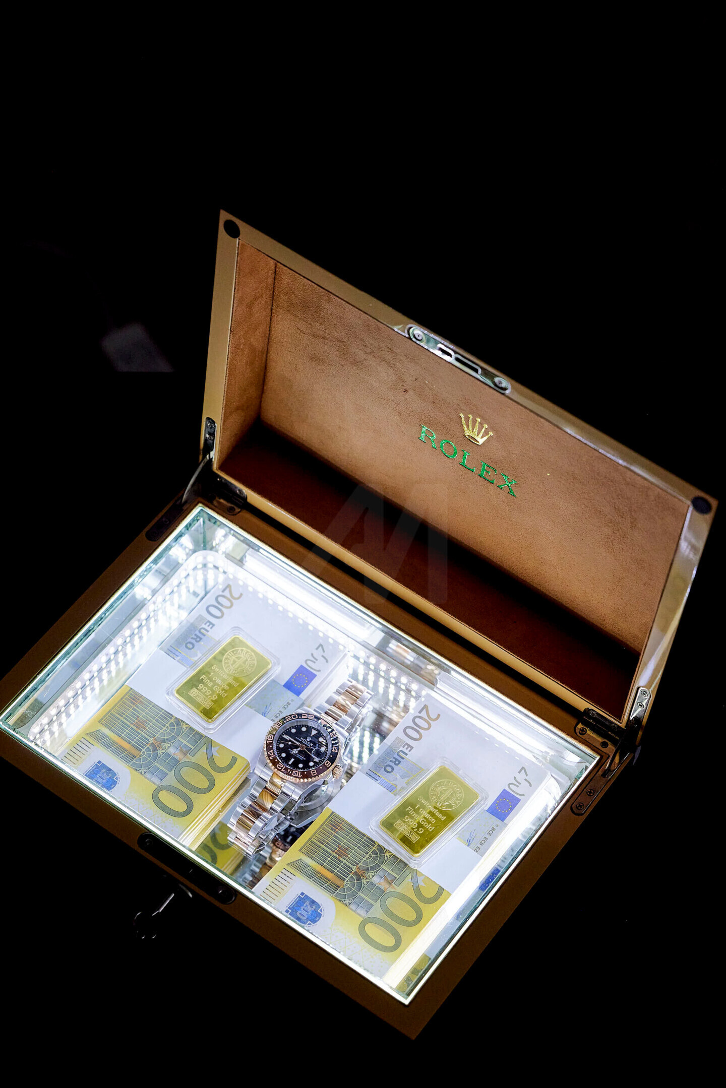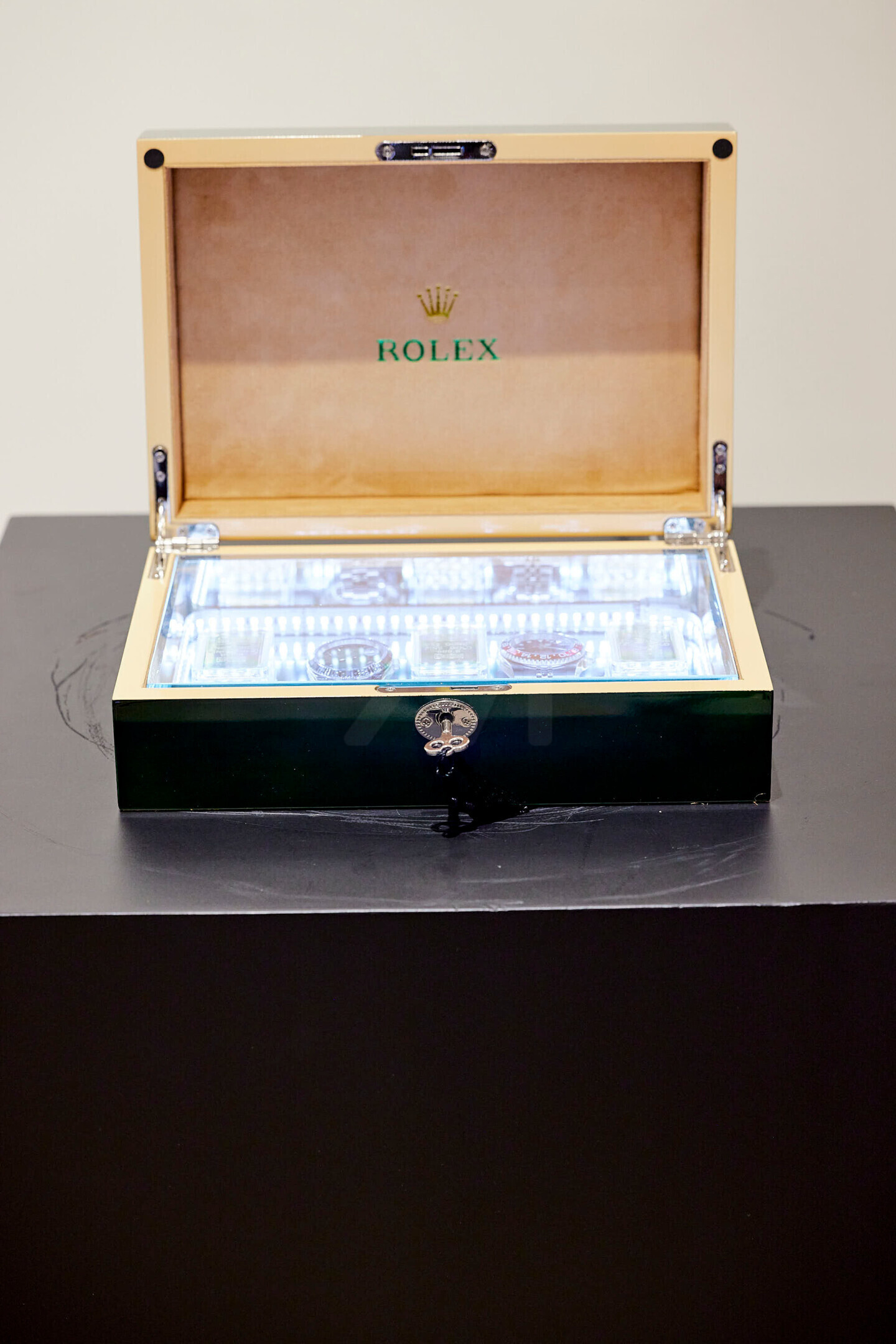 Working with unconventional materials such as marble, Rolex watch boxes, and other rare or restricted objects, Phantom Art produces artworks that exist in a gray zone between what is celebrated and what is forbidden. Each piece raises questions about value, possession, and the fragile line that separates art from contraband.