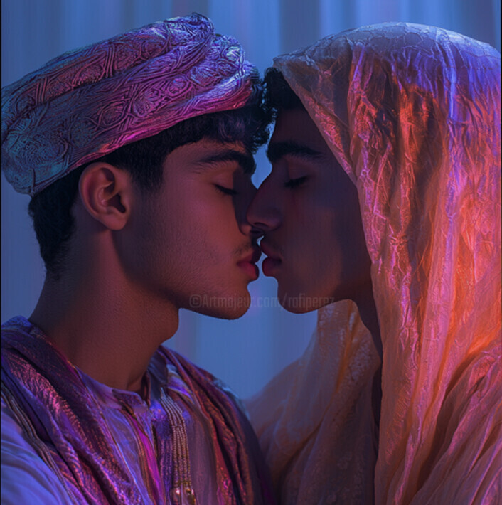 Over the years, Raphael has explored various themes in his art, notably interpersonal relationships. His first work focused on male-female relationships, before he openly accepted his homosexuality at the age of 32. Since then, he has created idealistic paintings depicting same-sex relationships in a domestic environment, depicting scenes from everyday life with tenderness and affection.